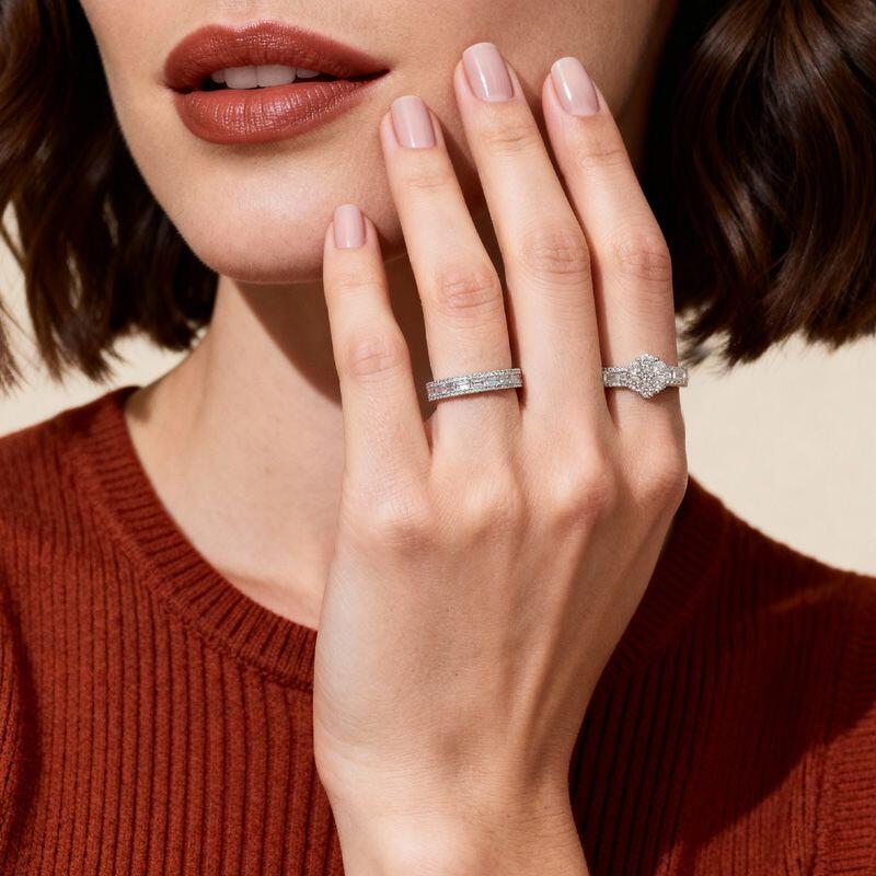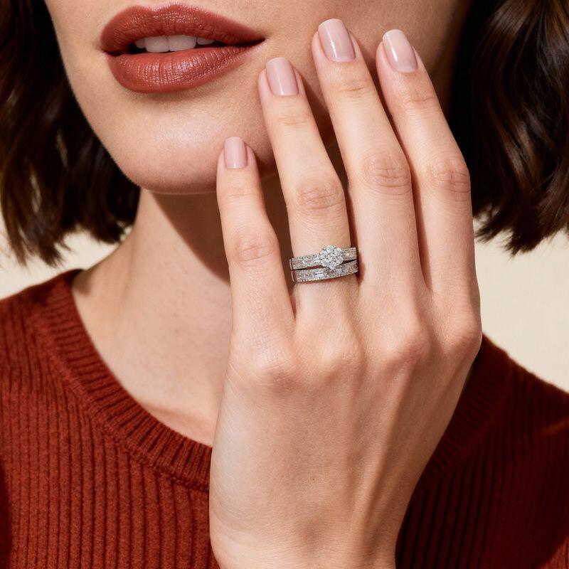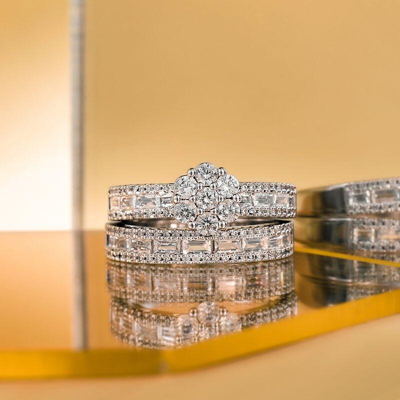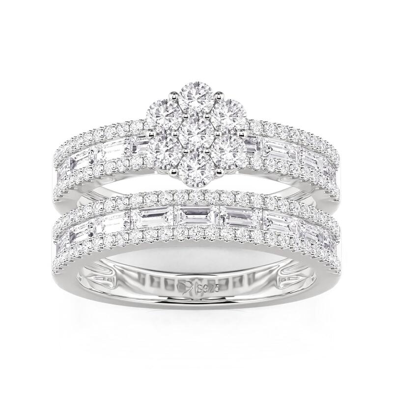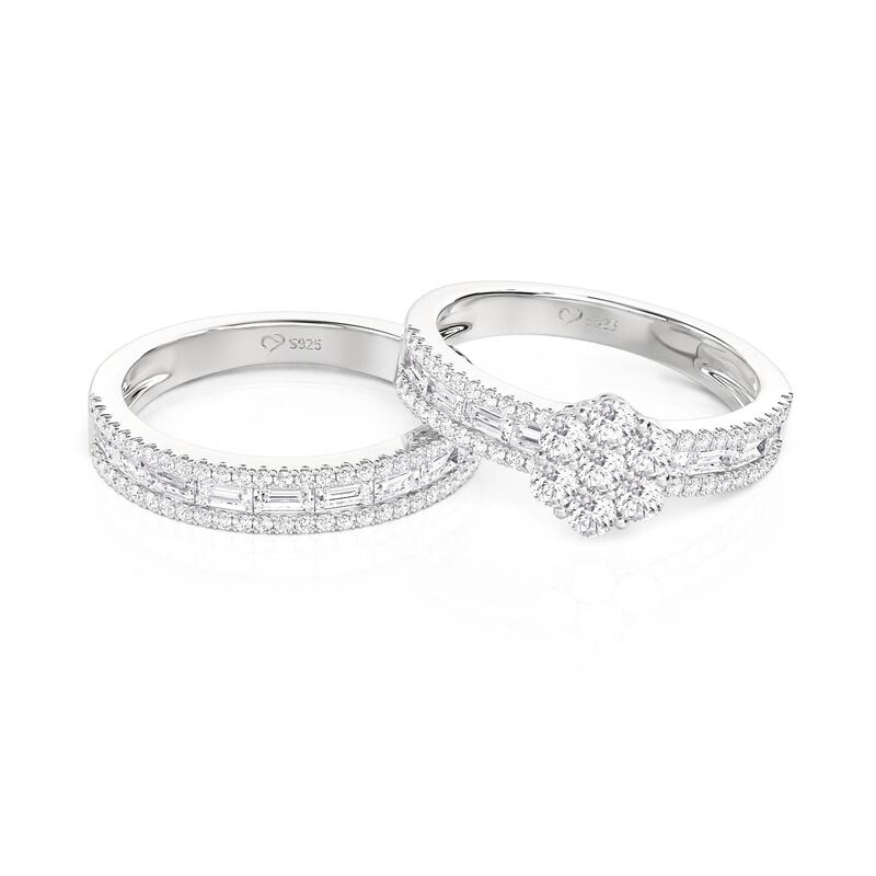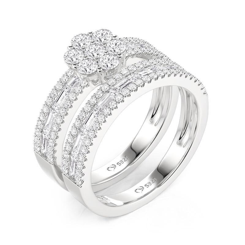 Jeulia Set Bague de Fiançailles Florale Groupée avec Bague Éternité
