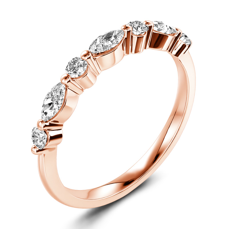 Jeulia 10K/14K/18K Or Platine Moissanite Alternance Coupe Ronde&Marquise Bague
