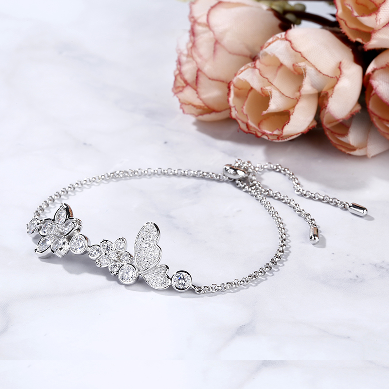 Jeulia Bracelet Bolo Fleur et Papillon en Argent Sterling