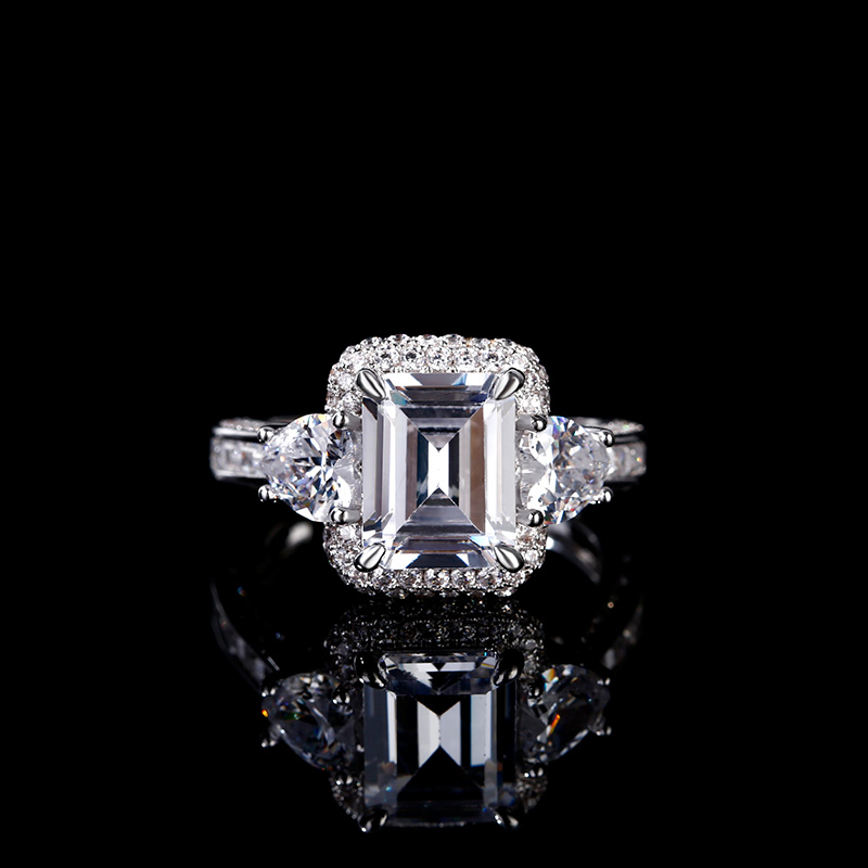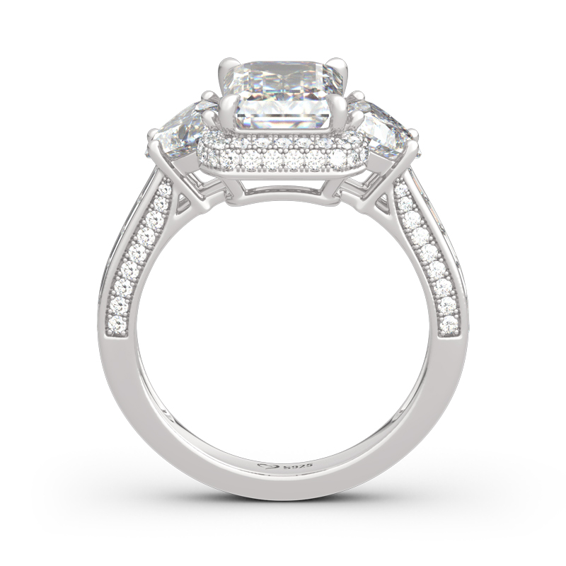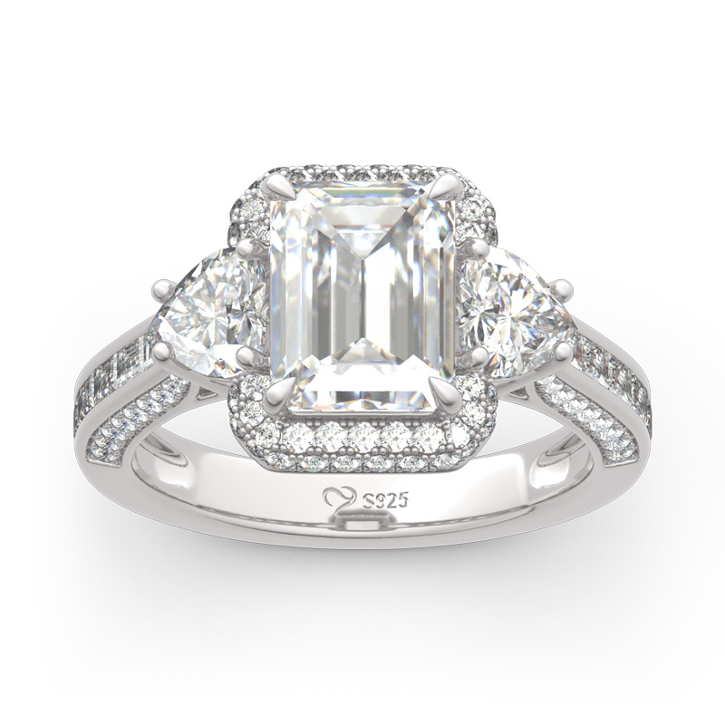 Jeulia Bague Halo Trois Pierre en Argent Sterling Coupe Emeraude