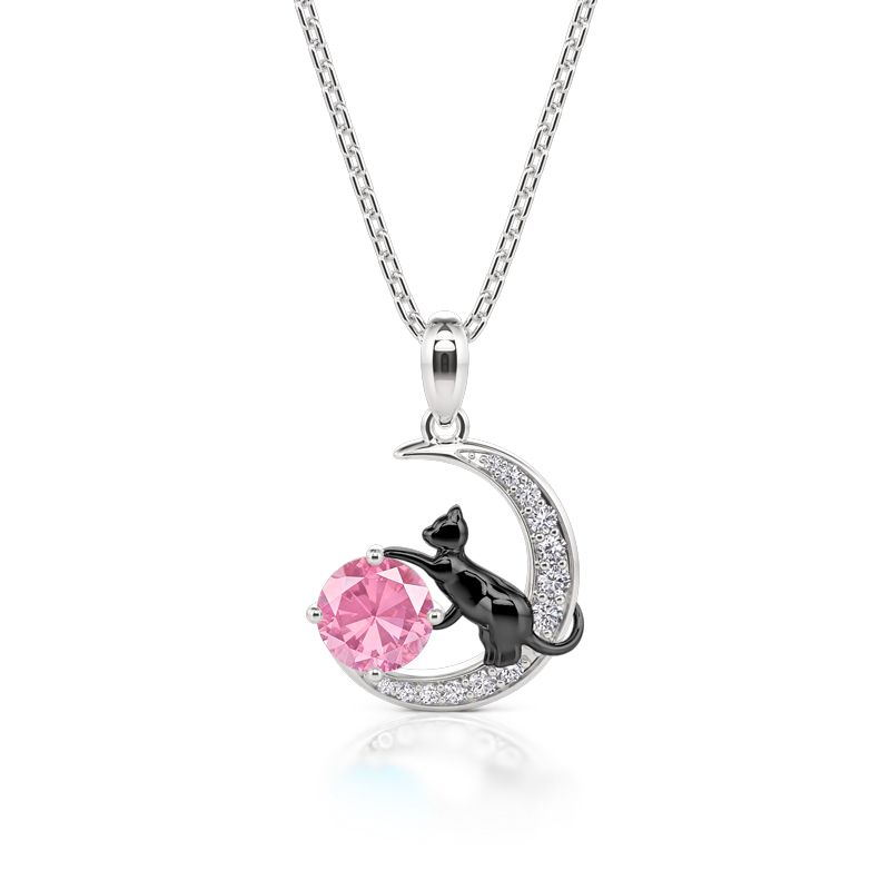 Jeulia Collier Personnalisé Chat noir sur la lune avec Pierre de Naissance en Argent Sterling
