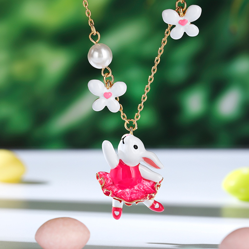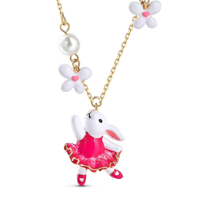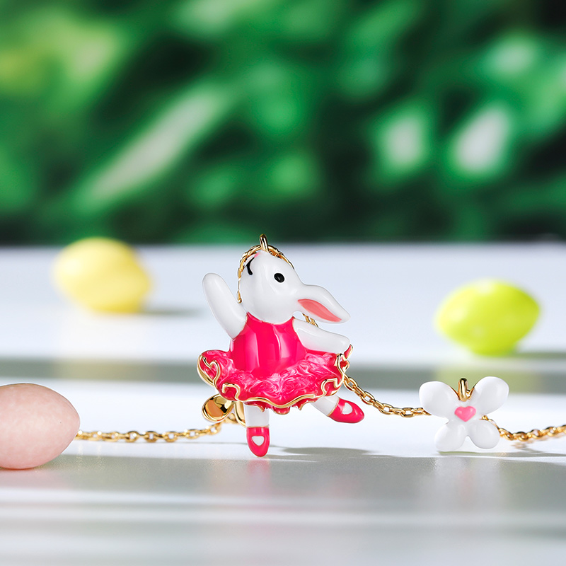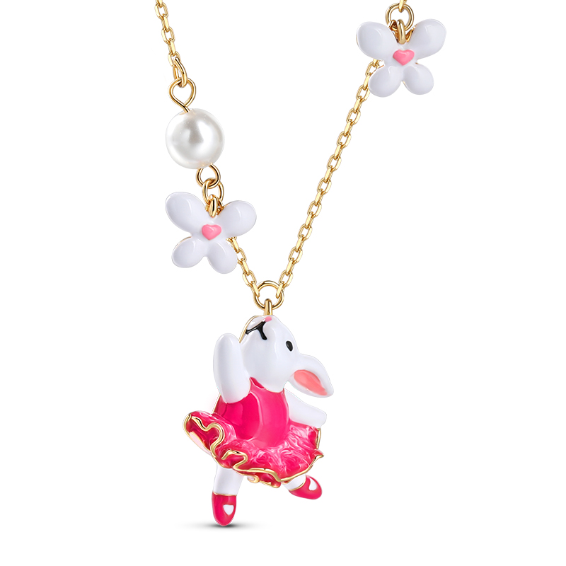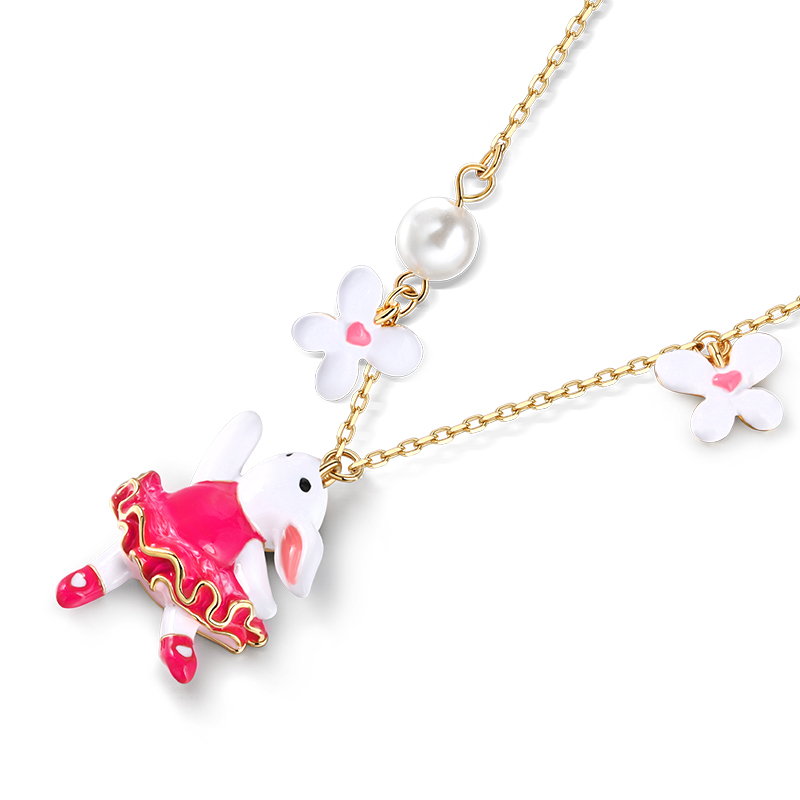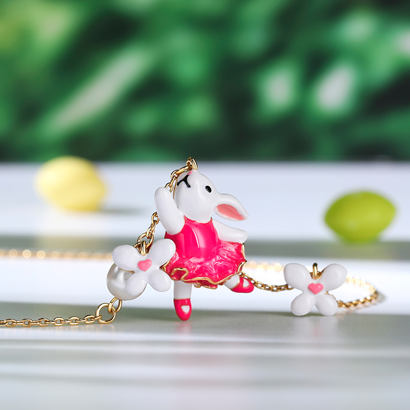 Jeulia Collier en argent sterling en forme de lapin enchanté avec fleurs en émail