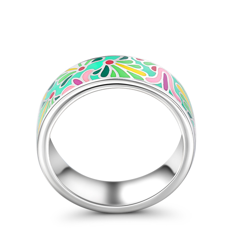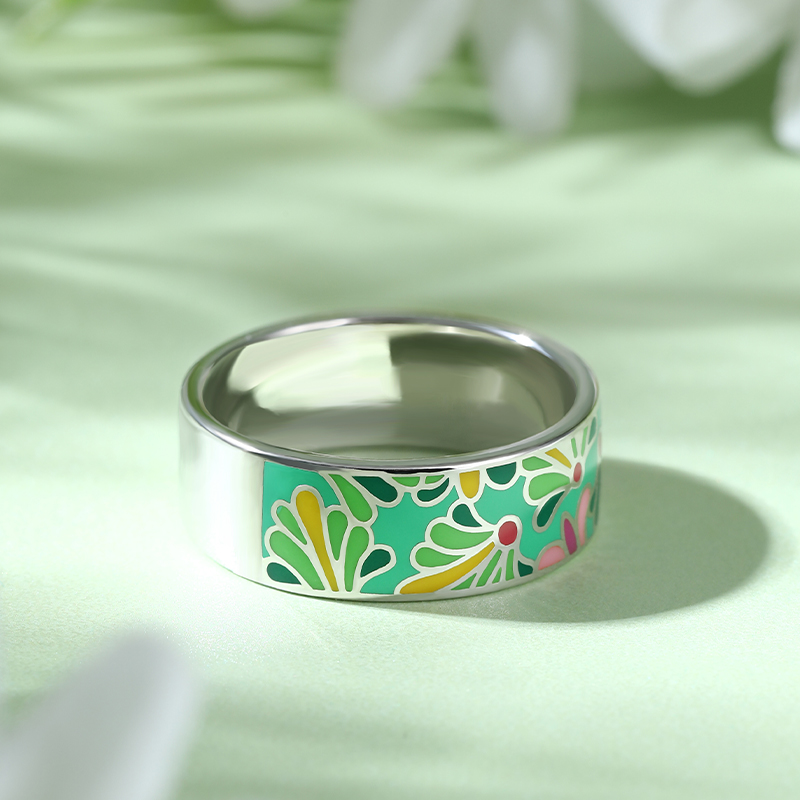 Jeulia "Jardin des fées" Alliance pour femme Fleur Émail Argent Sterling