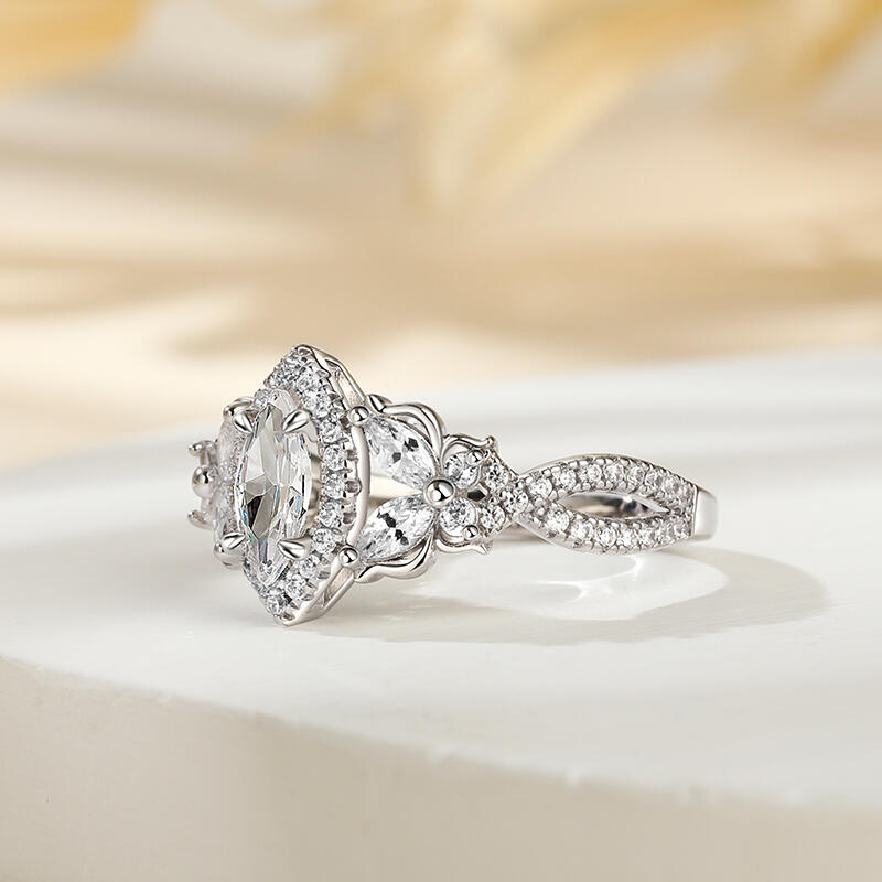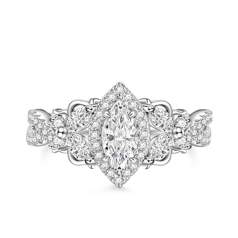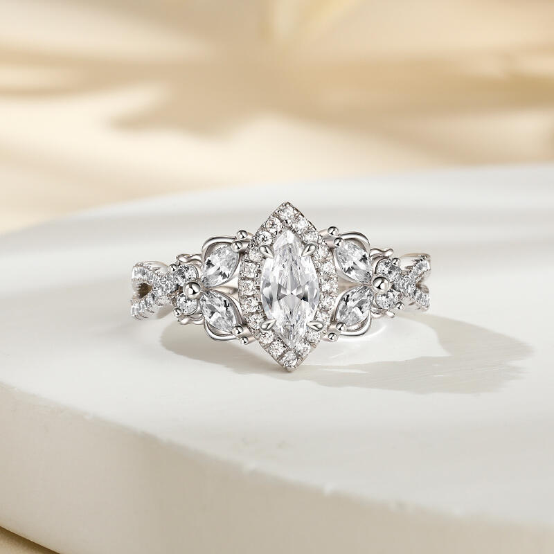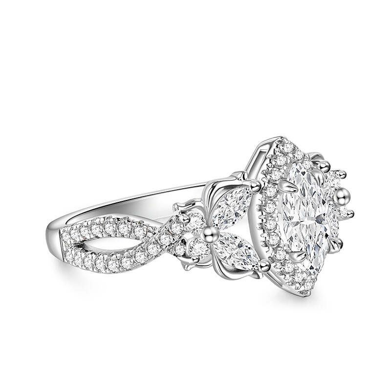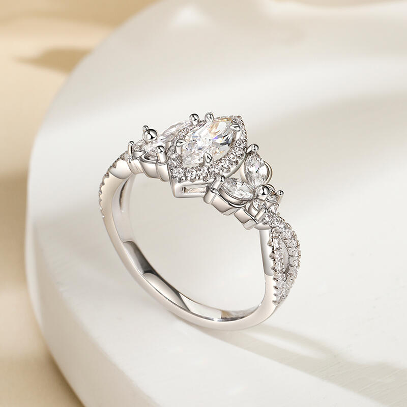 Jeulia Bague de fiançailles Papillon Halo Couple Marquise Torsadé Argent Sterling