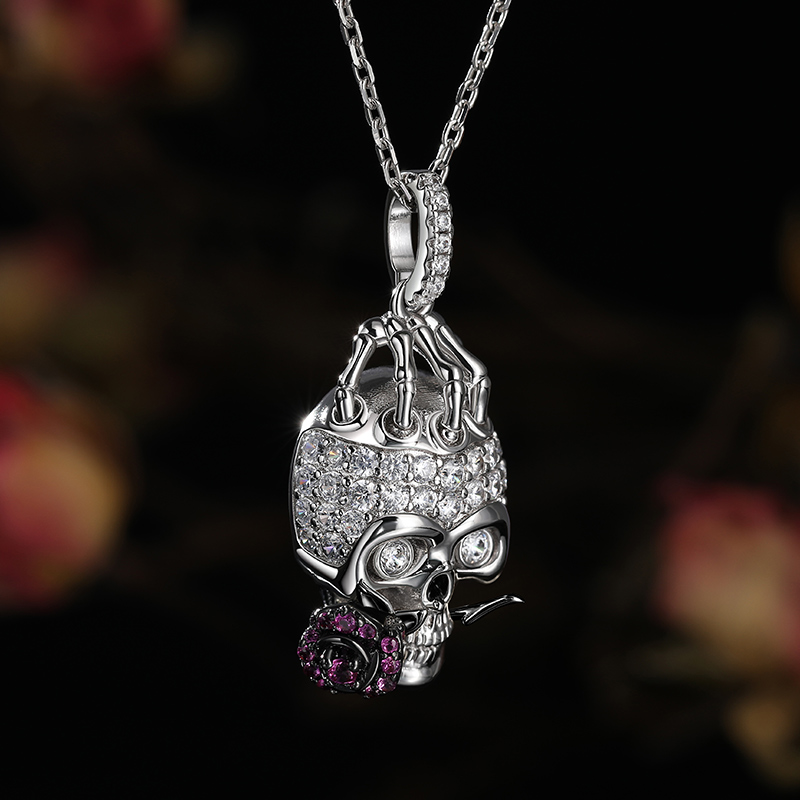 Jeulia Collier Crâne et rose Fleur Argent Sterling