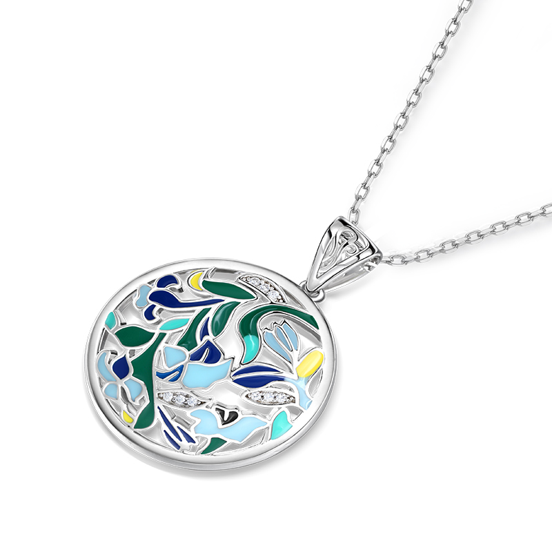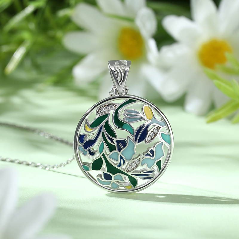 Jeulia "Garland" Collier Fleur and Feuille Émail Argent Sterling
