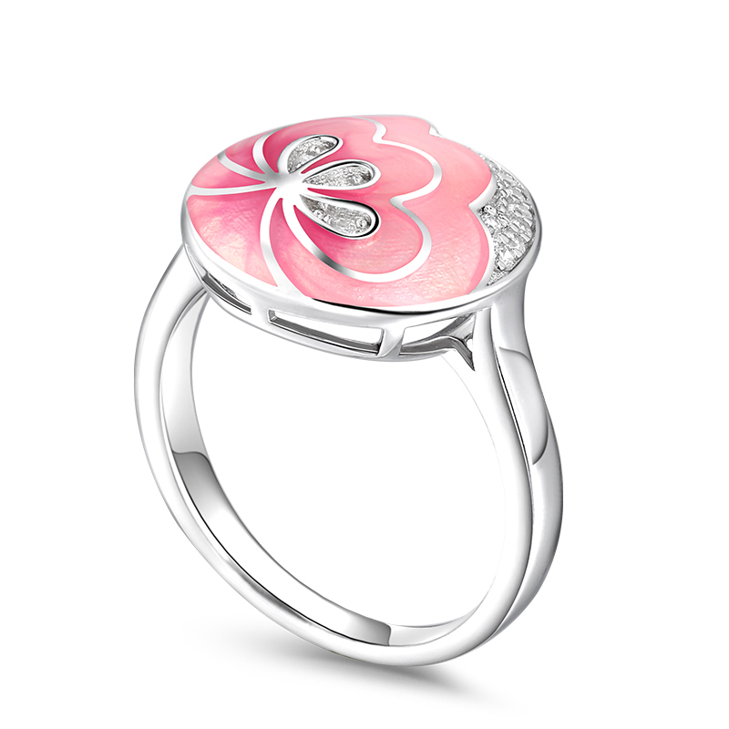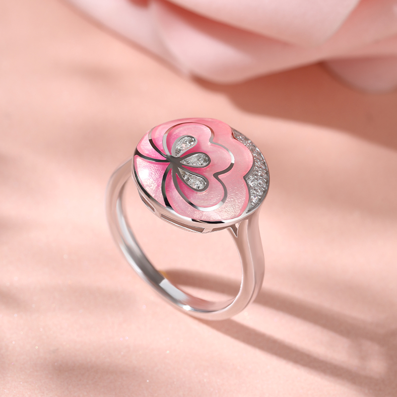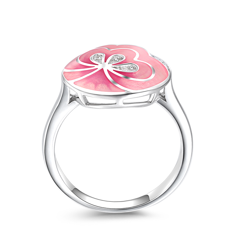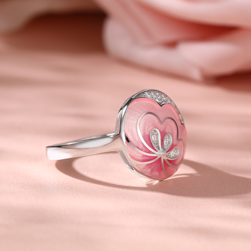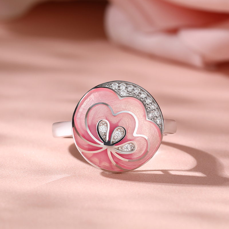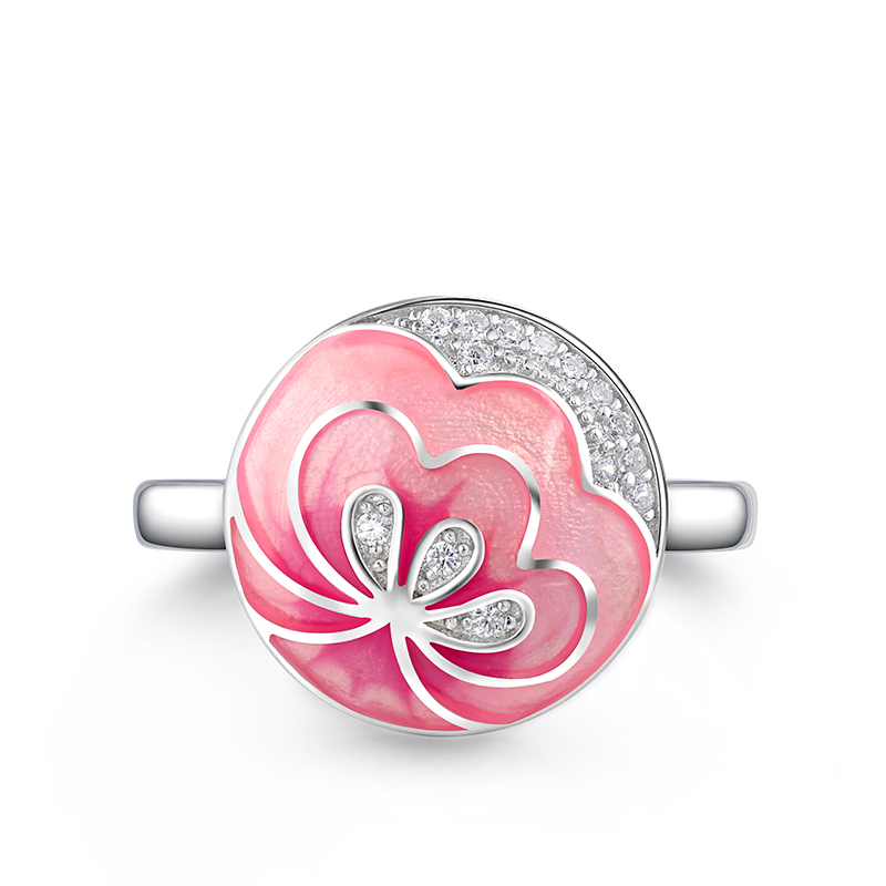 Jeulia "Amour rose" Bague Fleur Émail Argent Sterling