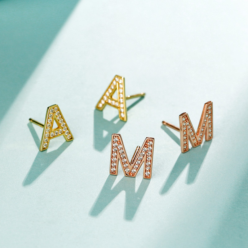 Jeulia Boucles d'Oreilles Initiales Personnalisées en Argent Sterling