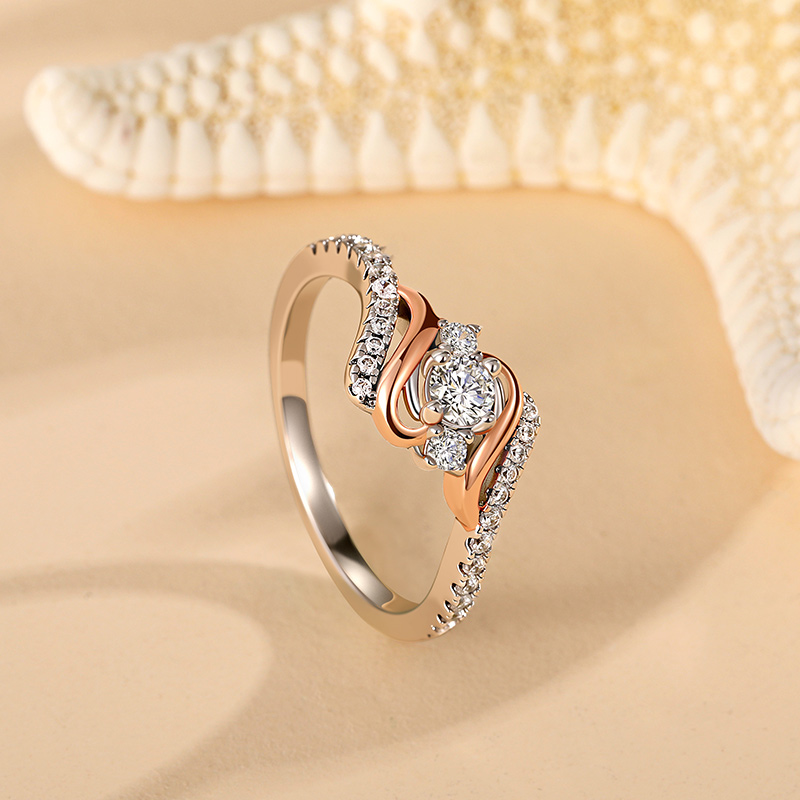 Cette bague de fiançailles Jeulia Amore à vagues bicolores avec trois pierres de naissance personnalisées est façonnée en argent sterling, alliant harmonieusement la fluidité des vagues océaniques à l’intemporalité de l’amour. L’anneau en forme de vague présente une technique bicolore où l’or rose et l’or blanc s’entrelacent comme les marées autour du doigt, centrés par trois pierres rondes. Cette bague de fiançailles bicolore sublime les demandes en mariage au bord de la mer grâce à son écho ludique aux vagues réelles, tandis que son design inspiré de la mer rayonne d’un esprit dynamique pour le quotidien. Les reflets changeants des pierres de naissance murmurent une histoire unique à chaque éclat de lumière, garantissant que les vœux d’amour coulent comme les marées—éternellement durables.