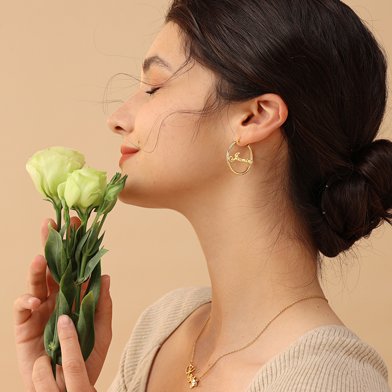 Jeulia Créoles avec Nom Personnalisé en Argent Sterling