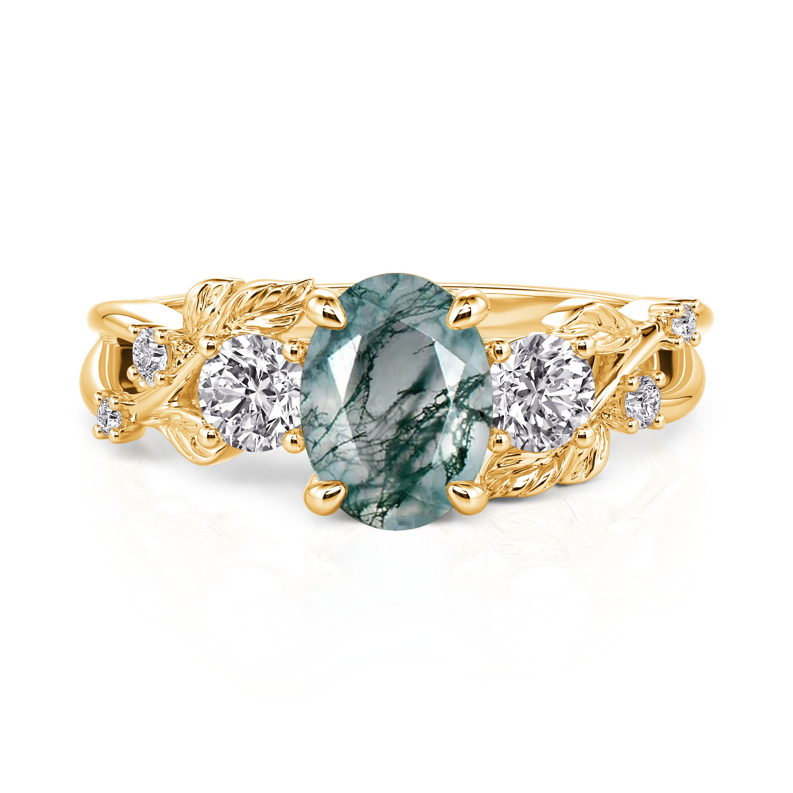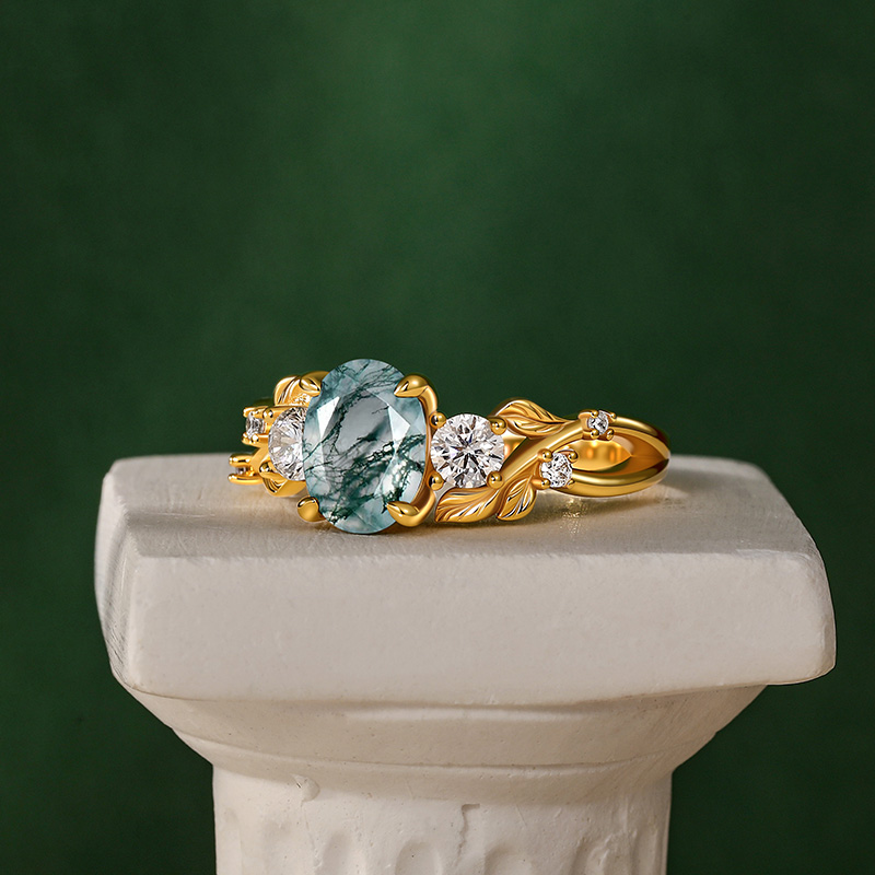 La Bague de Fiançailles Ovale Bypass en Agate Mousse Jeulia présente un design époustouflant qui met en valeur une pierre d'agate mousse vibrante élégamment sertie dans un style bypass Le coupe ovale de la pierre centrale est magnifiquement complétée par des accents scintillants de chaque côté créant un équilibre harmonieux entre beauté naturelle et élégance raffinée Les motifs feuillus sur le bracelet renforcent sa sensation organique symbolisant la croissance et la connexion Cette bague feuille est parfaite pour quelqu'un qui cherche une pièce de fiançailles unique et significative qui se démarque tout en célébrant l'individualité et l'amour