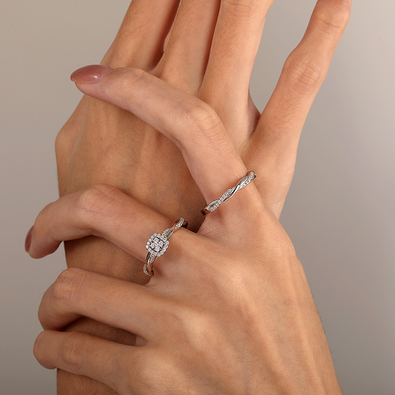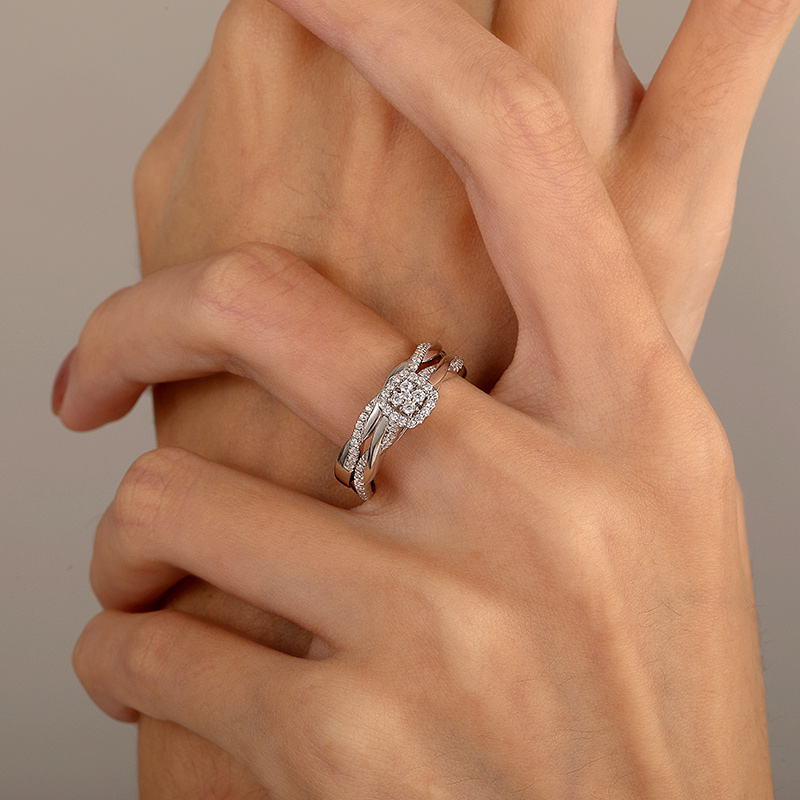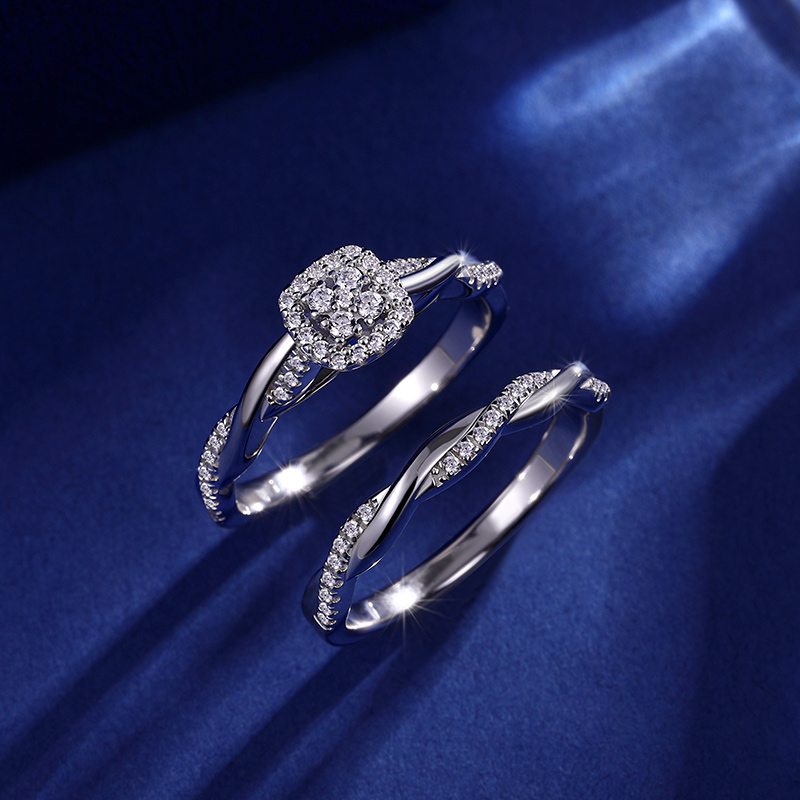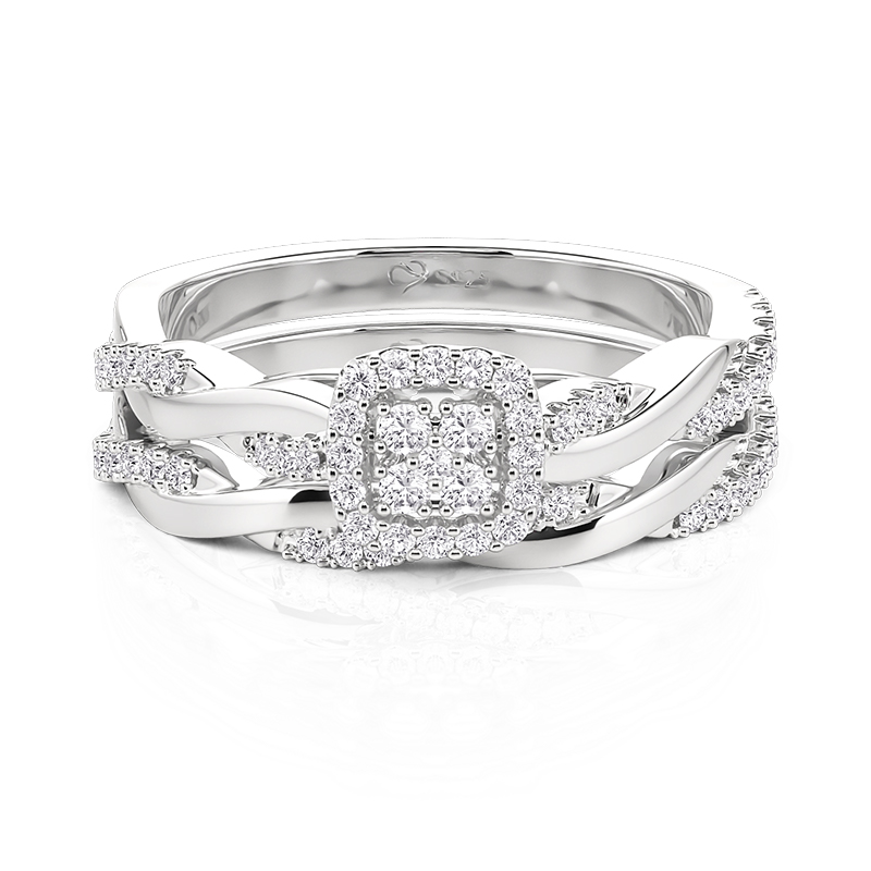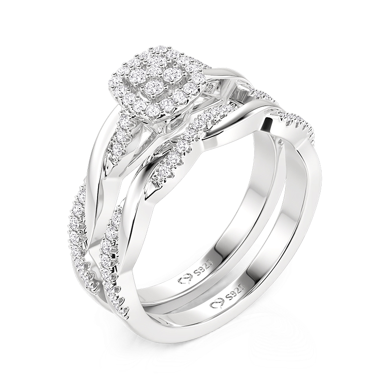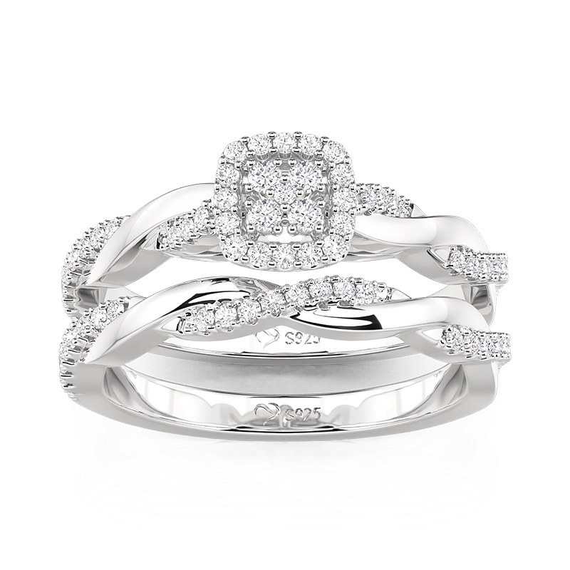 Jeulia Ensemble de Bagues Classique Twist Halo Pavé 2pièces Argent Sterling