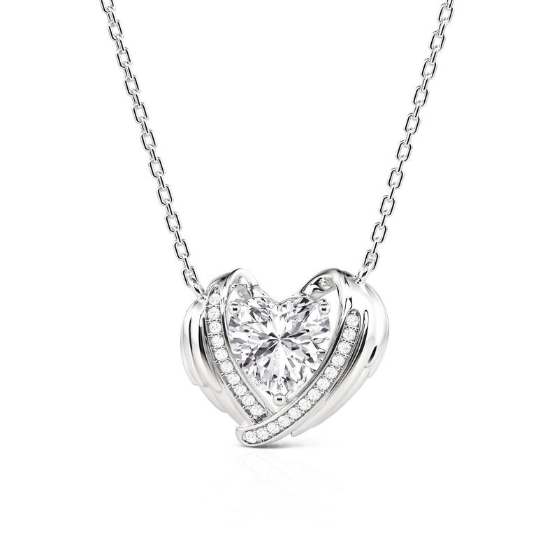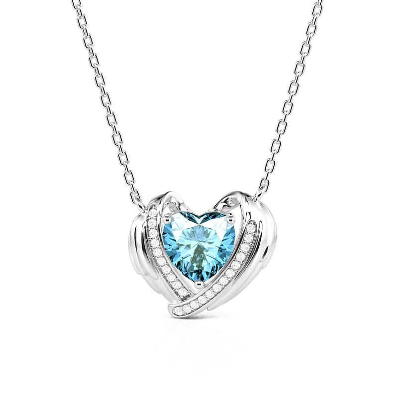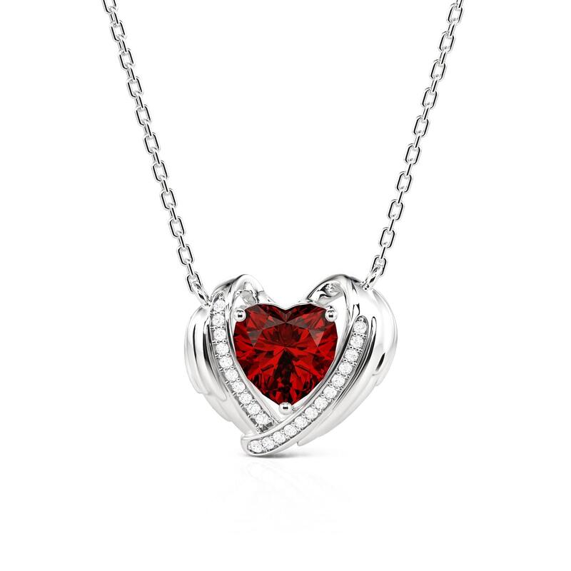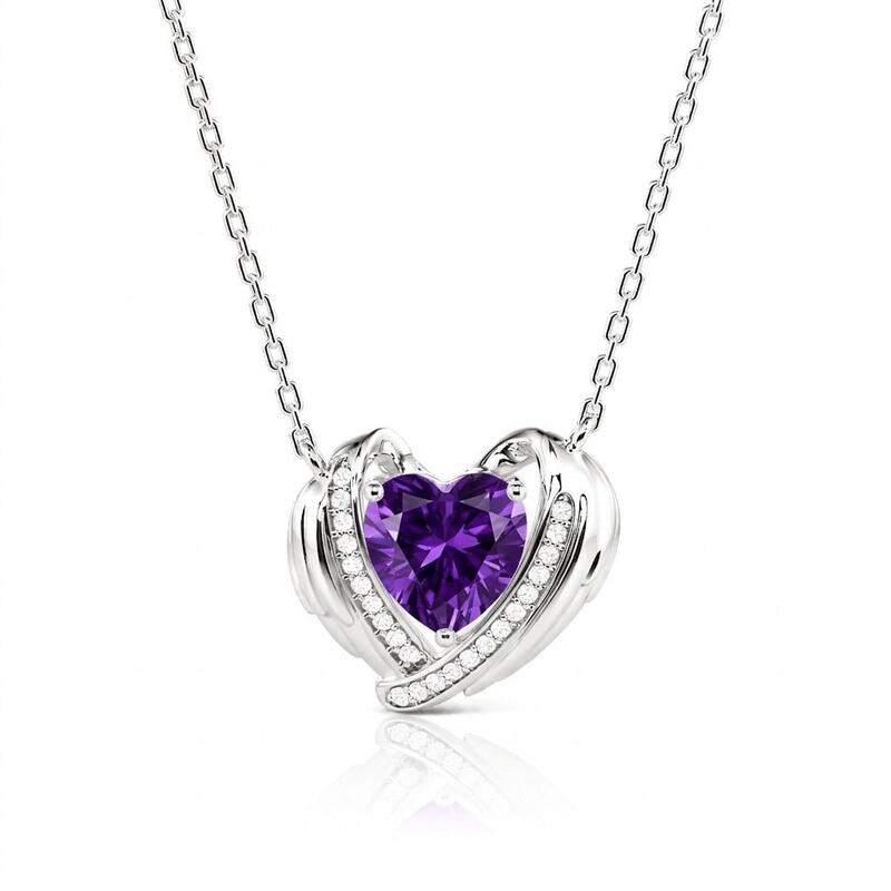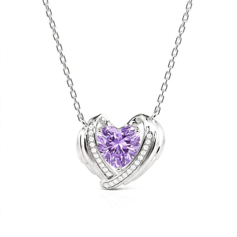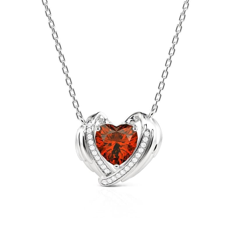 Jeulia Custom Angel Wing Necklace with Heart Birthstone