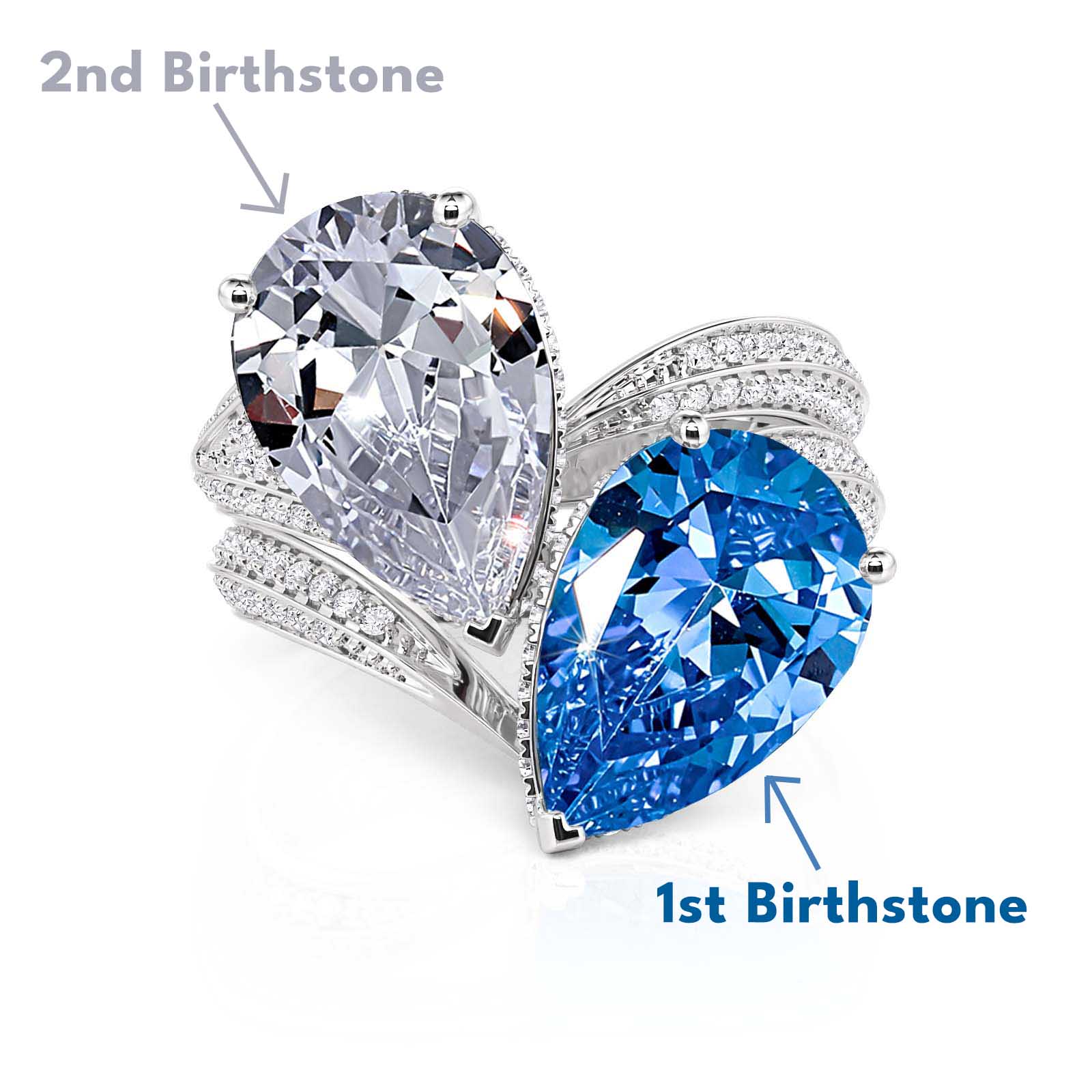 Jeulia Ensemble de Bague de Fiançailles Toi et Moi Poire Personnalisée avec Pierre de Naissance