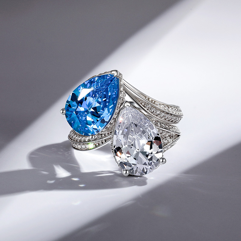 | Couleur de pierre: Blanc diamant, Bleu aigue-marine | |