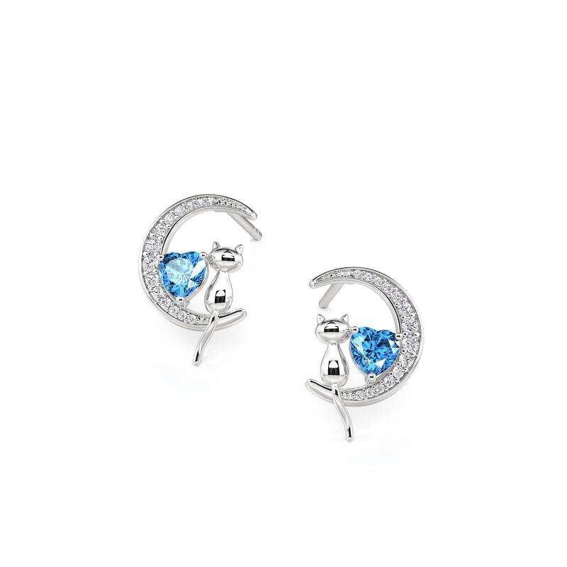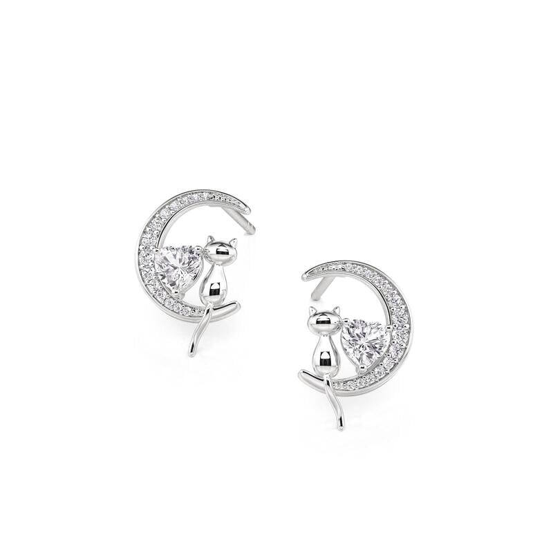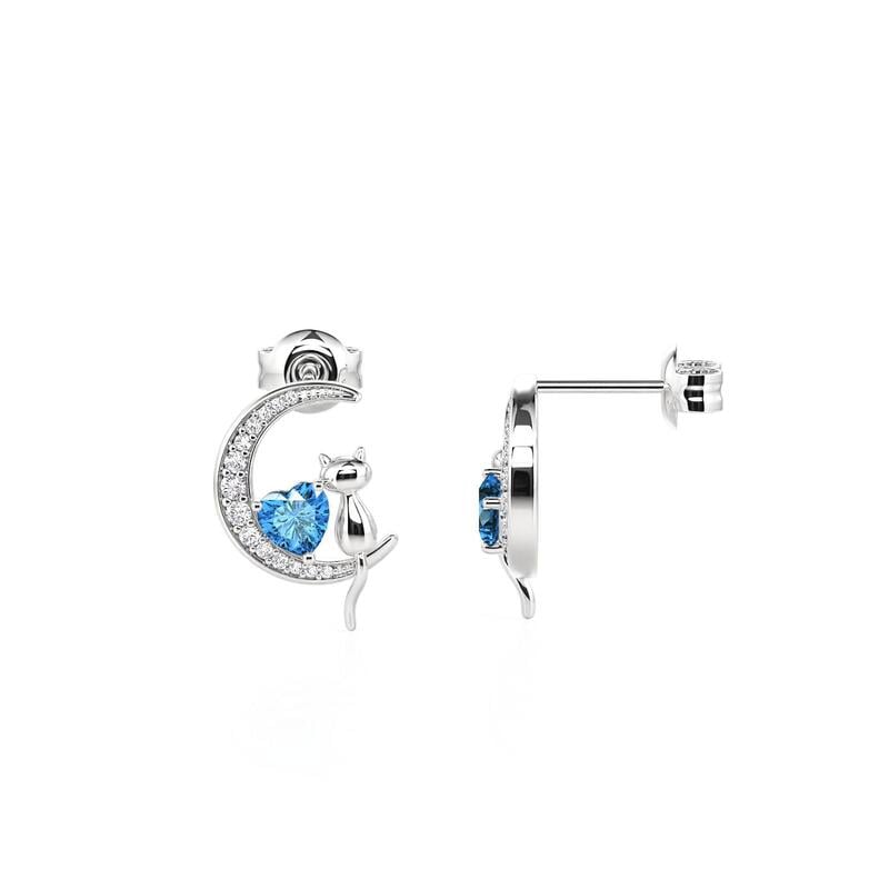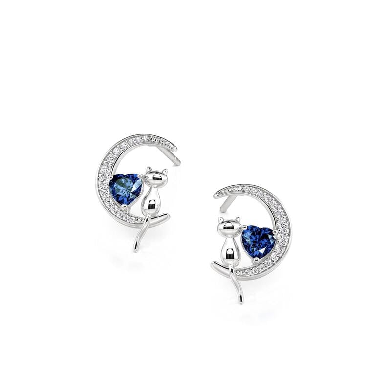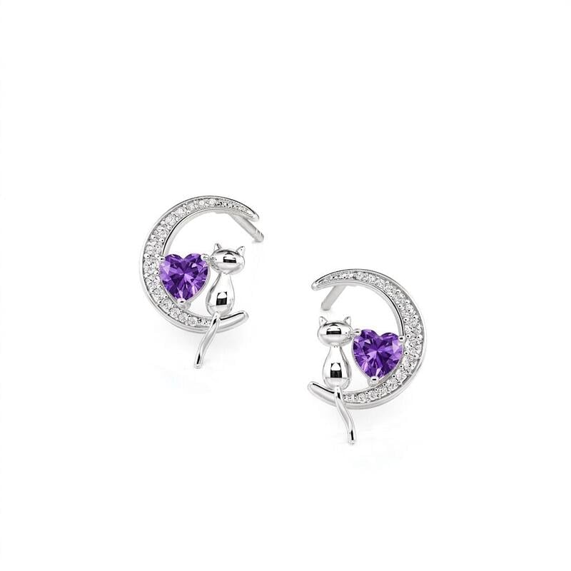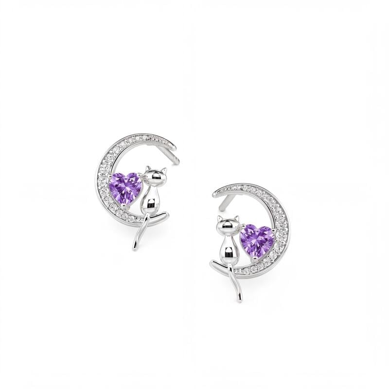 Jeulia Custom Cat on Moon Earrings with Heart Birthstone