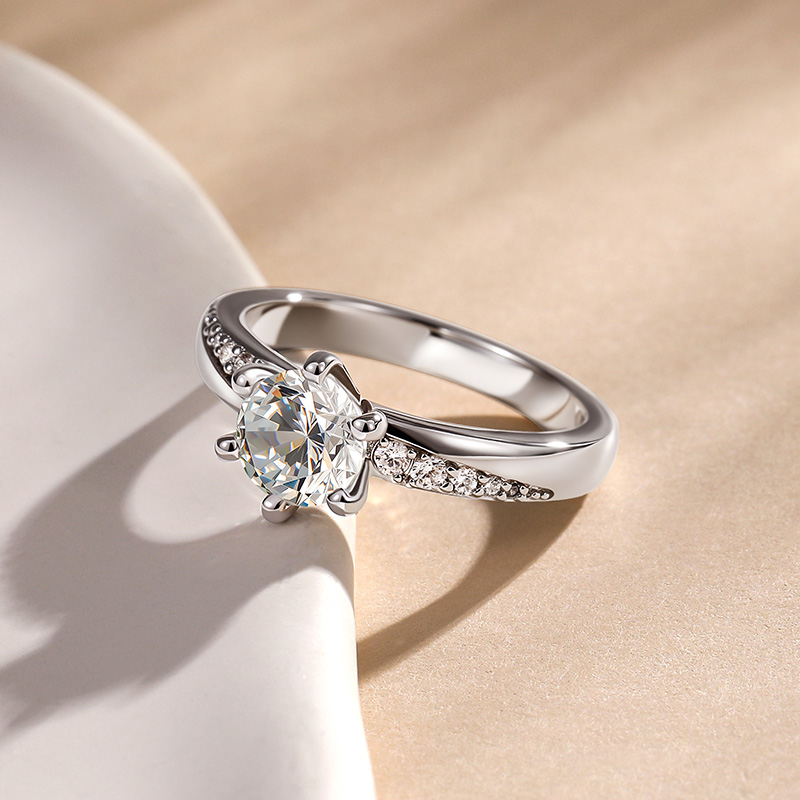 Jeulia Bague Pavée Ondulée Classique Coupe Ronde Personnalisée