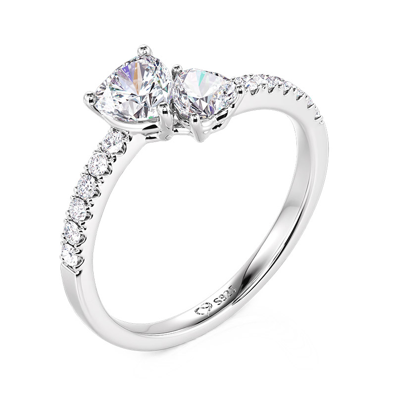 Deux cœurs véritables se rencontrent ici, fusionnant en une étincelle éternelle. Au cœur de cette alliance personnalisable à double cœur ornée de pierres de naissance se trouvent deux pierres principales intimement entrelacées, évoquant deux âmes s'unissant dans une étincelle d'éternité. Les pierres principales et le métal sont personnalisables en couleur pour créer une pièce unique incarnant votre amour. La monture tridimensionnelle permet à la pierre de scintiller sous tous les angles, tandis que le pavé de diamants en forme d'étoiles sur la branche ajoute une délicatesse lumineuse. Qu'il s'agisse d'une demande en mariage, d'un anniversaire ou d'un port quotidien, cette bague alliance à double cœur sera le témoignage parfait de votre histoire. Personnalisez votre bague dès aujourd'hui et laissez les deux cœurs sceller votre promesse d'éternité !