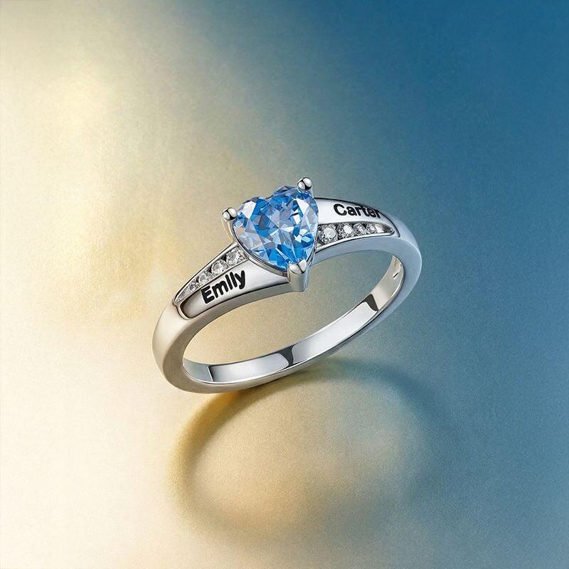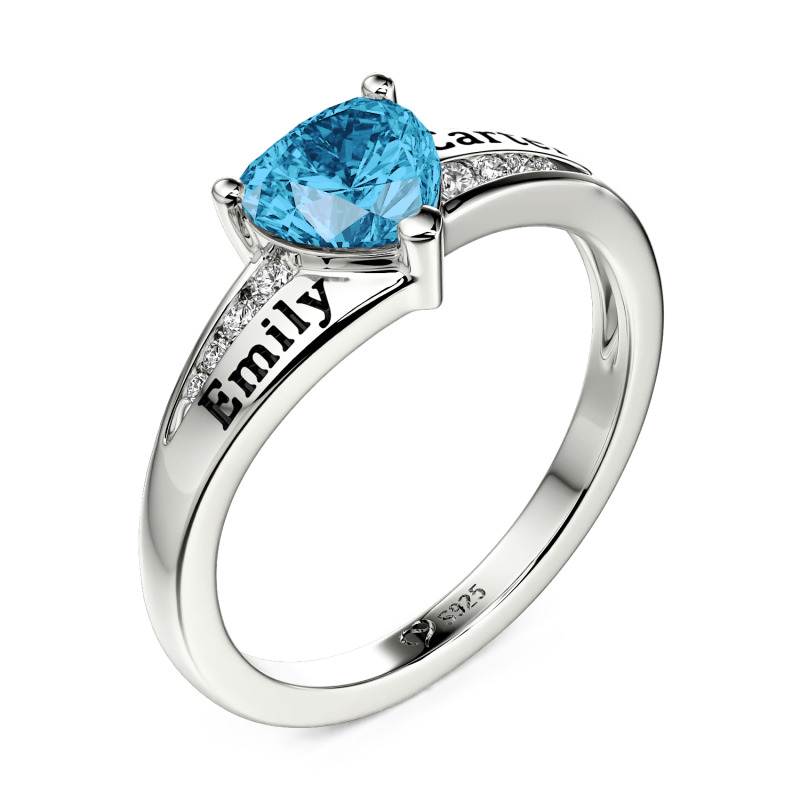 Jeulia Bague de Fiançailles Personnalisée Gravée en Forme de Cœur