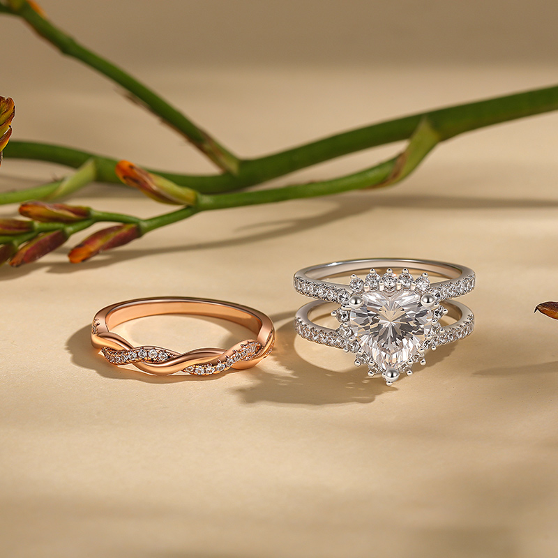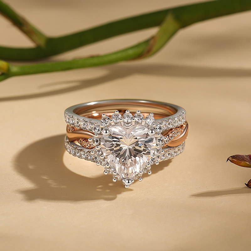 Jeulia Ensemble de Bagues à Cœur Halo Personnalisé et Torsade Interchangeable