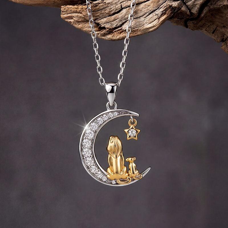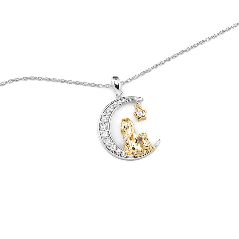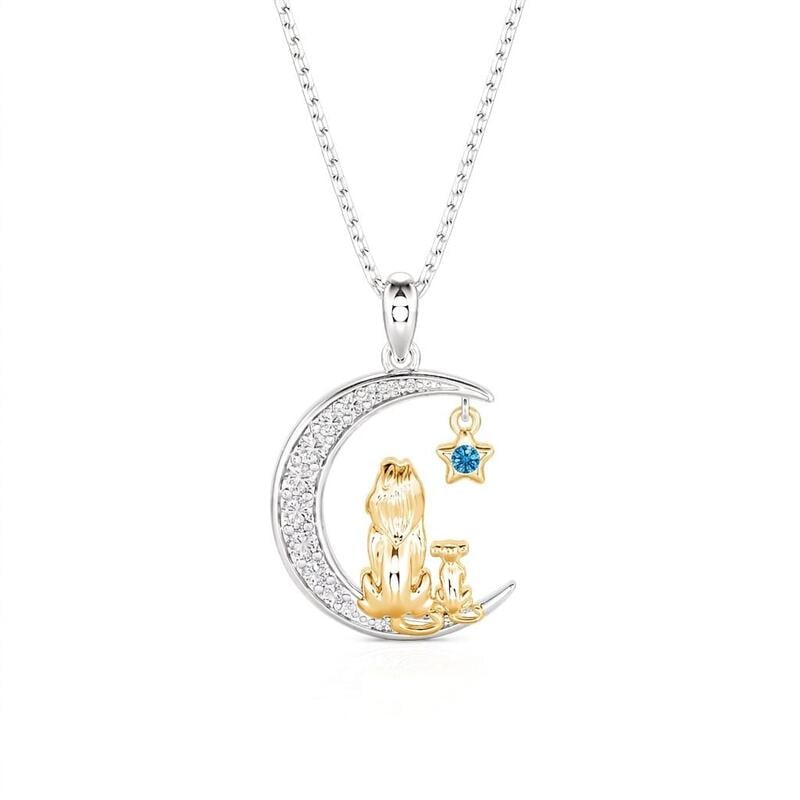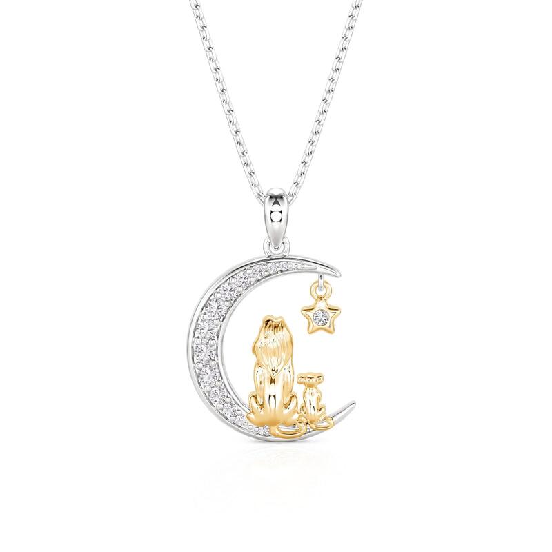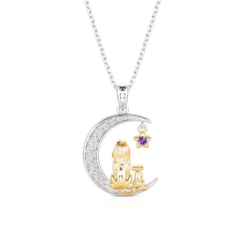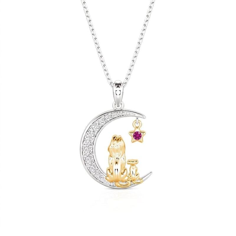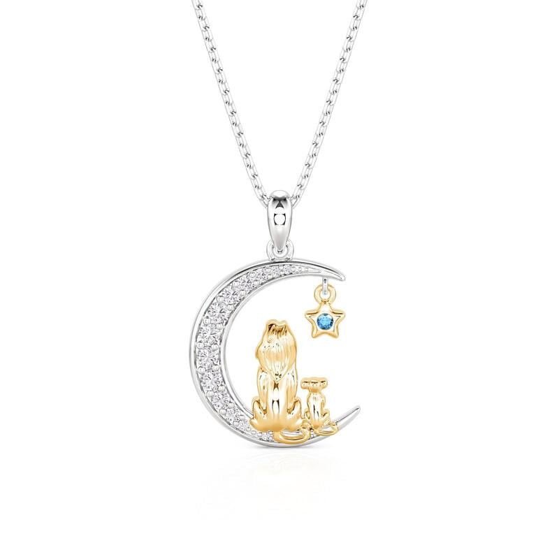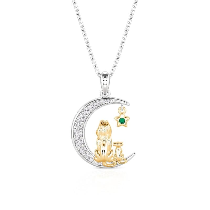 Jeulia Custom Mom and Baby Lion Moon Necklace with Birthstone