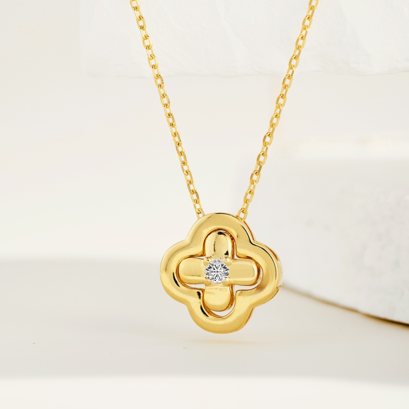 Jeulia Collier Détachable Trèfle Argent Ton or Chaîne de clavicule