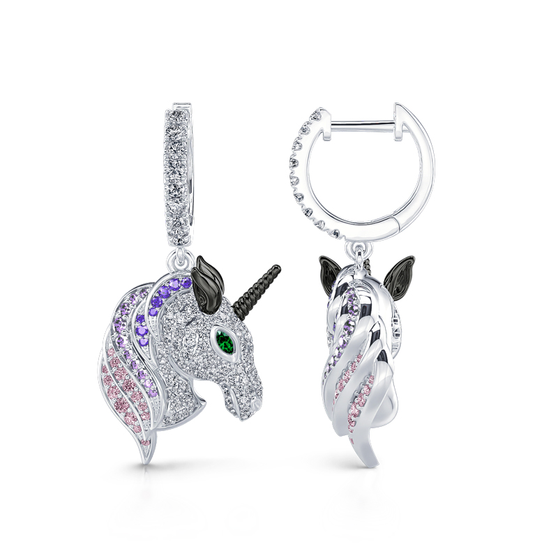 Jeulia "Les rêves deviennent réalité" Boucles d'oreilles Licorne en Argent Sterling