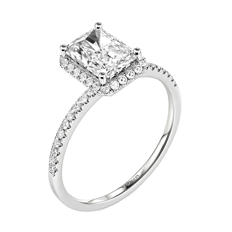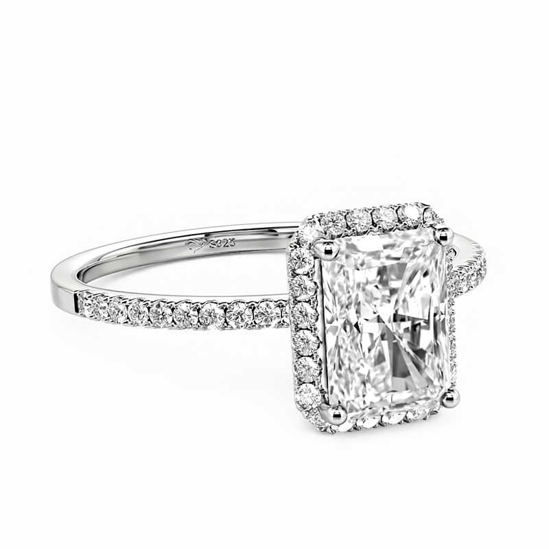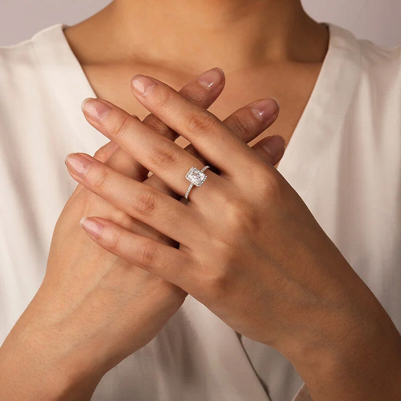 Jeulia Bague de fiançailles Coupe Émeraude Halo Argent Sterling