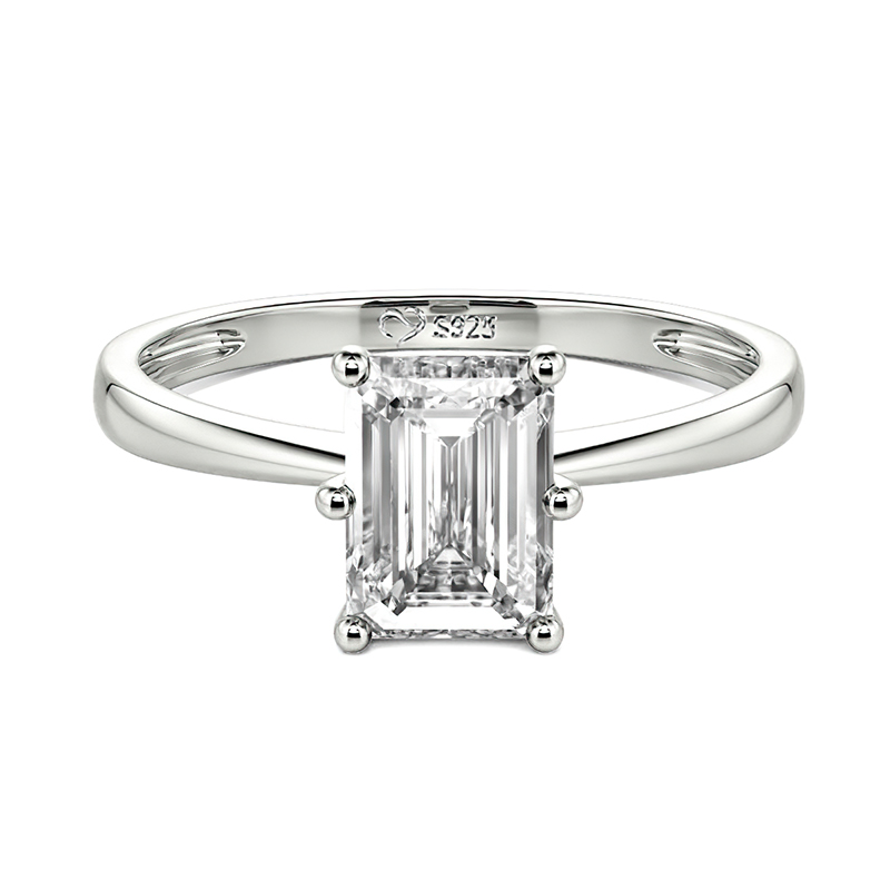Jeulia Bague de fiançailles Coupe Émeraude Solitaire Argent Sterling