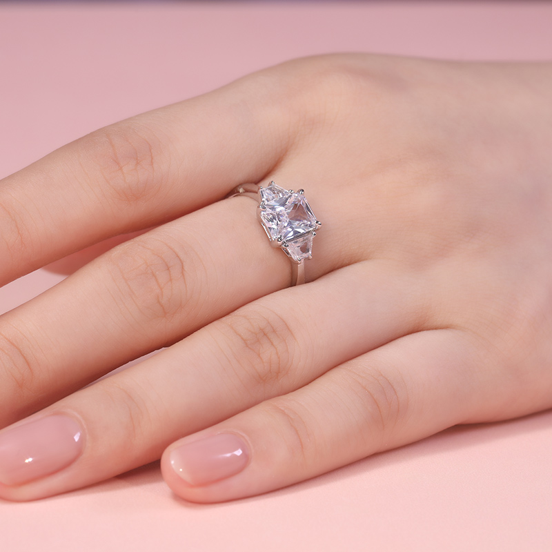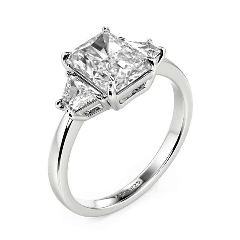 Jeulia Bague de fiançailles Coupe Émeraude Trois pierres Argent Sterling