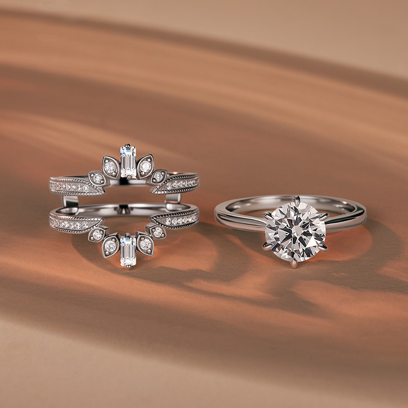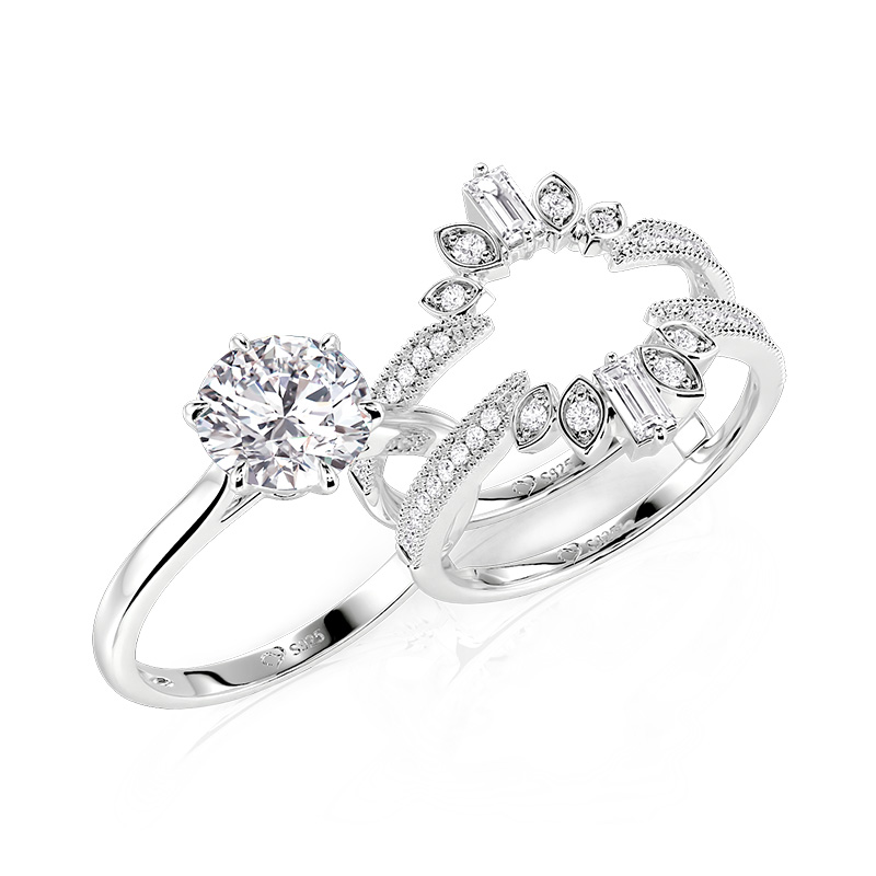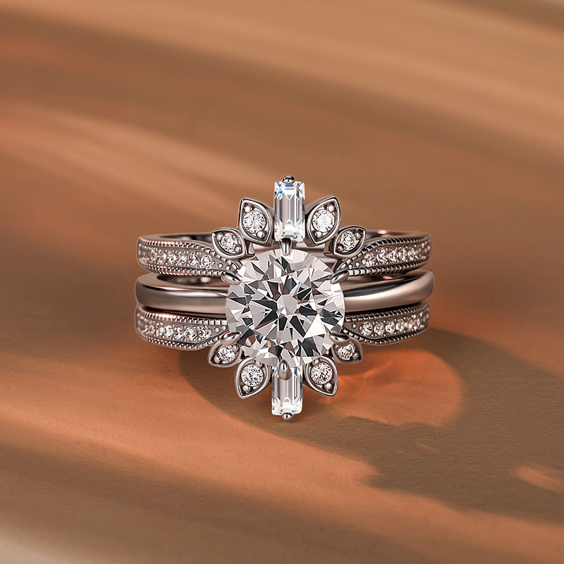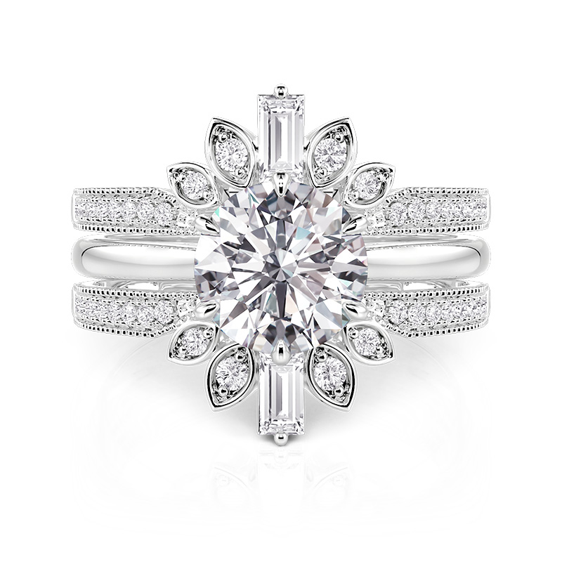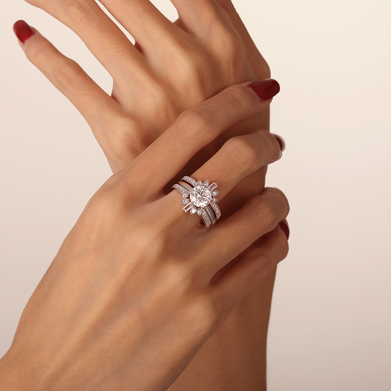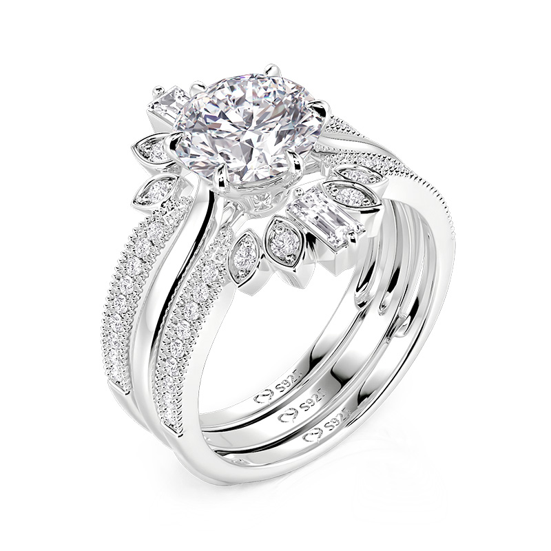 Jeulia Ensemble de Mariage Ronde à Enhanceur de Grappe Floral 2 Pièces