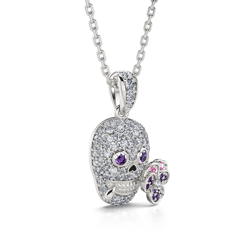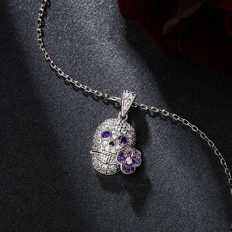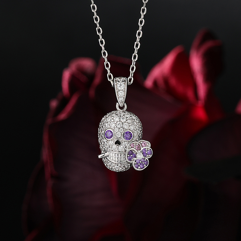 Jeulia "Romance à jamais" Collier Crâne et Fleur en Argent Sterling