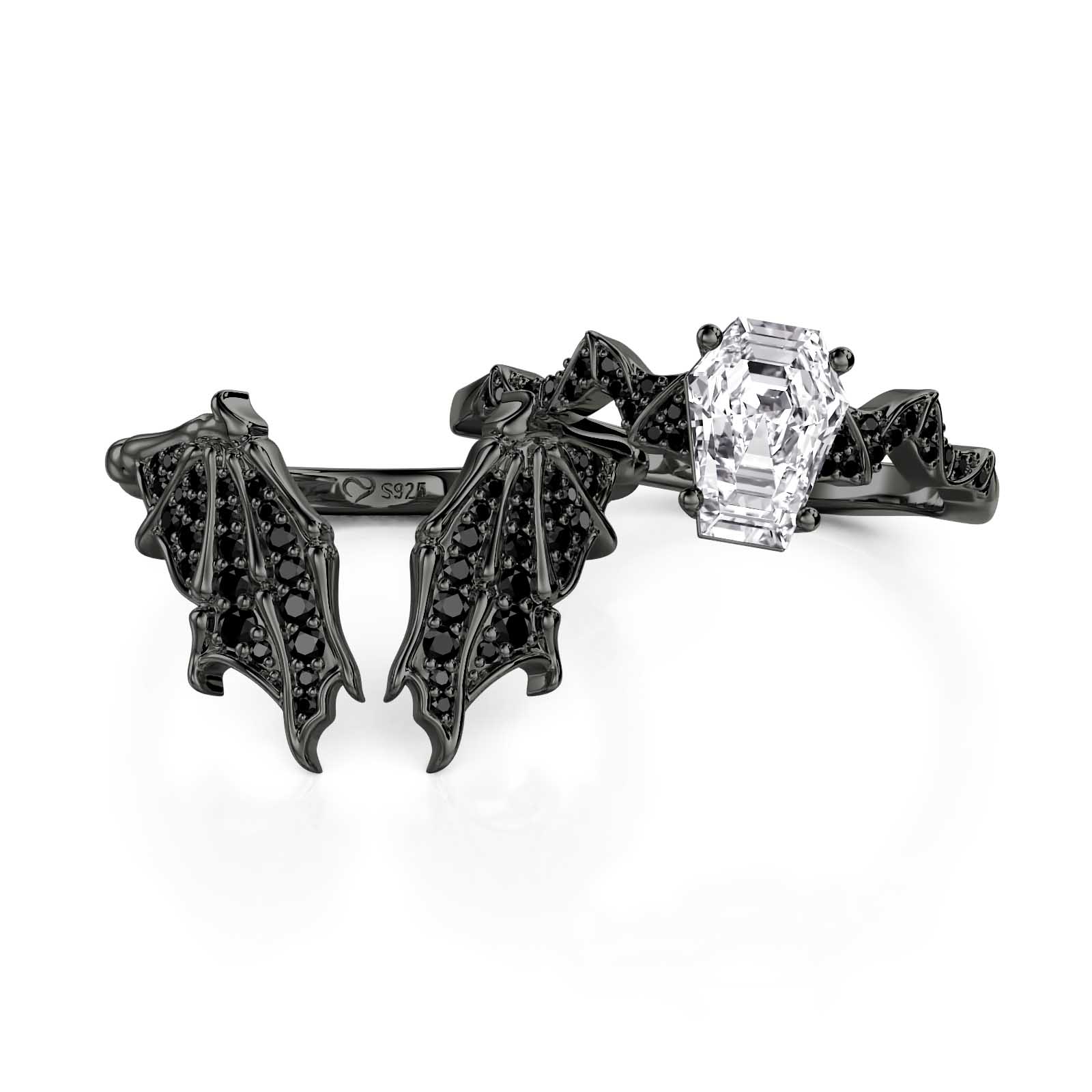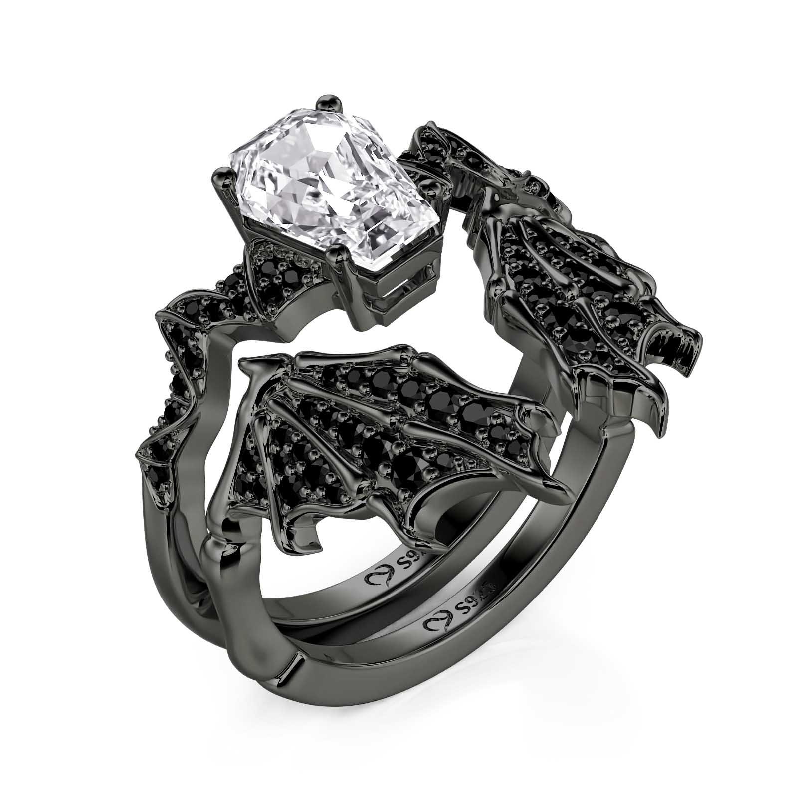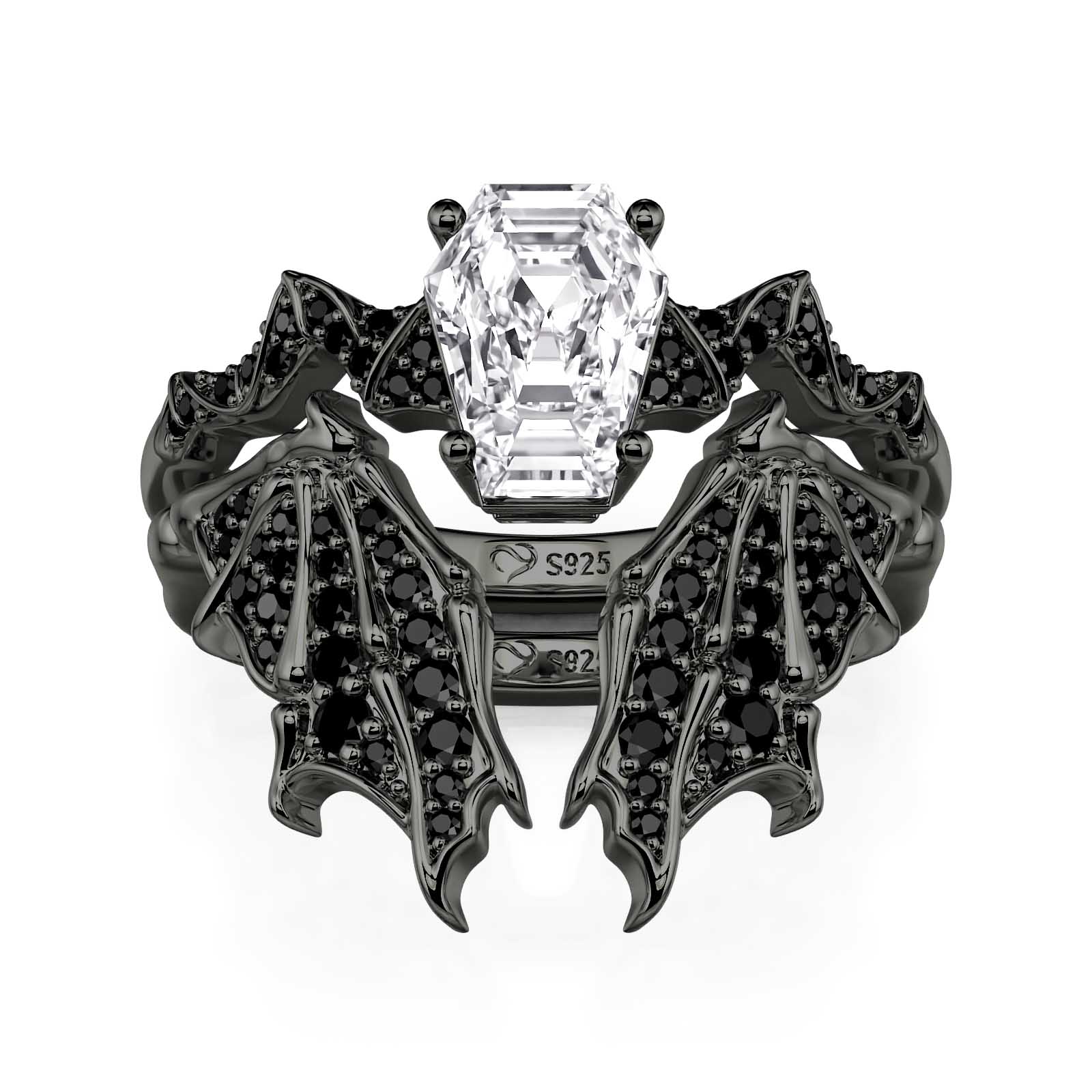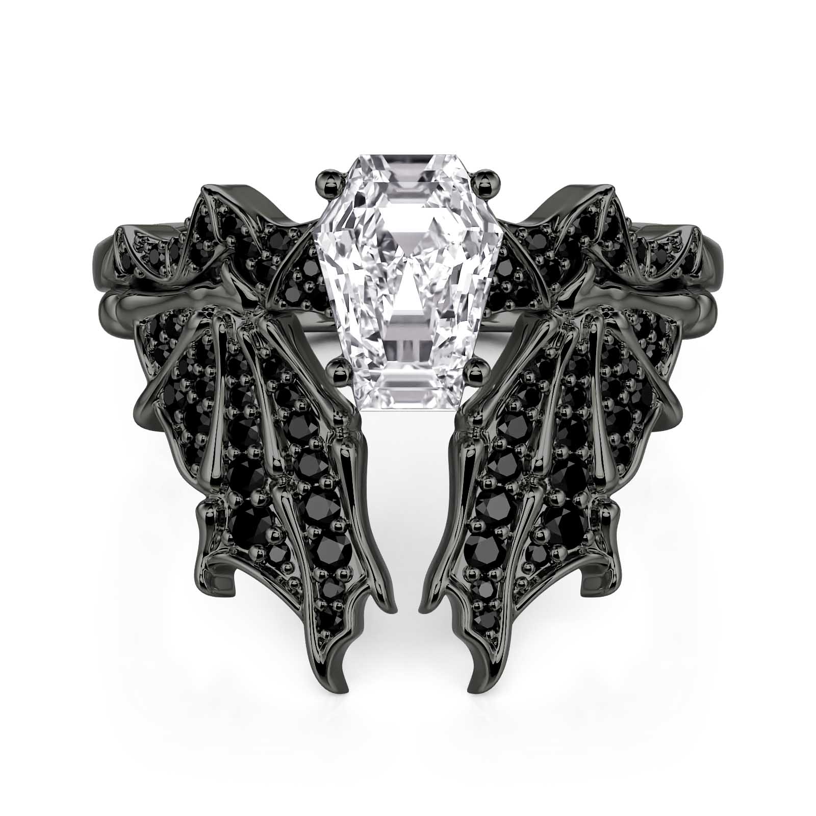 Jeulia Ensemble de Bague de Fiançailles Gothique Chauve-souris Noire Coupe Cercueil