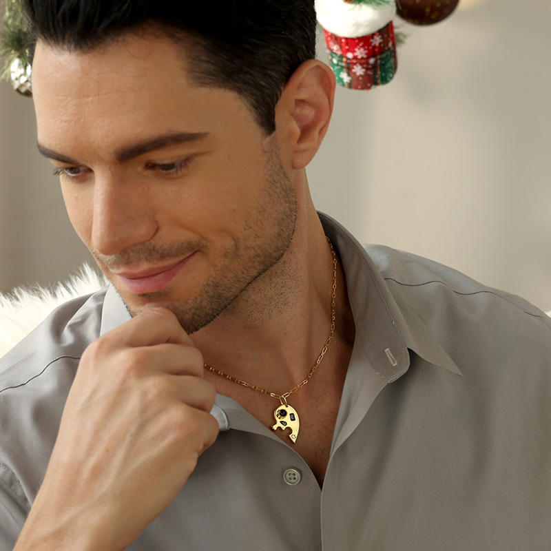 Jeulia Collier Couple Demi-cœur Puzzle Personnalisé Projection de photos Argent Sterling