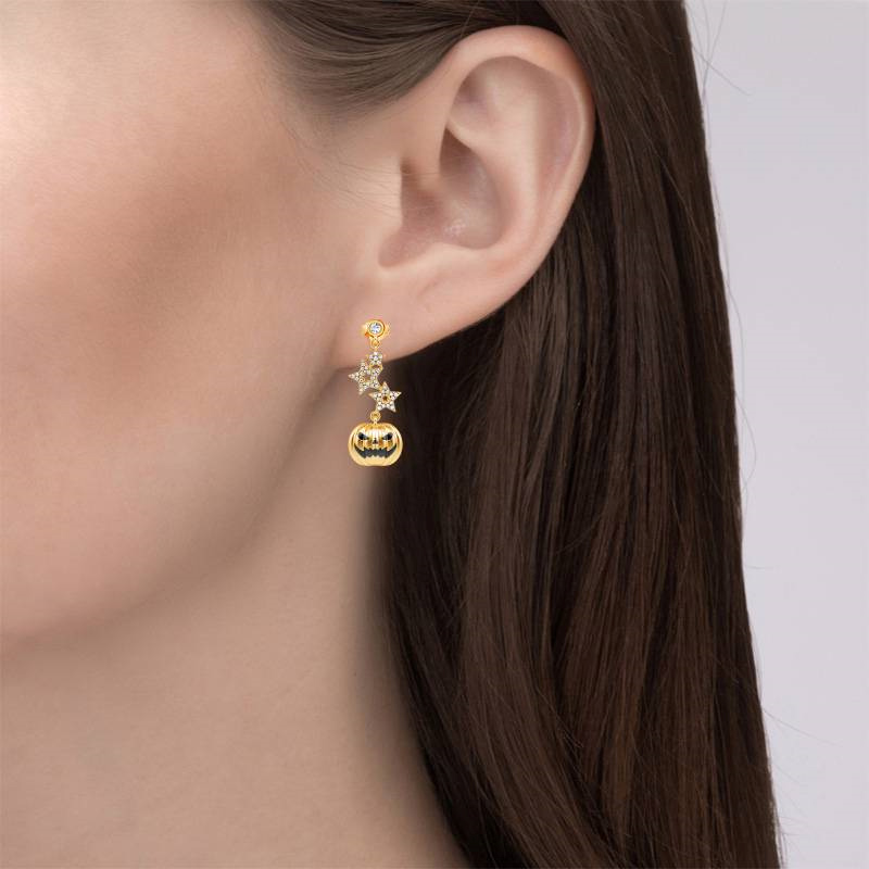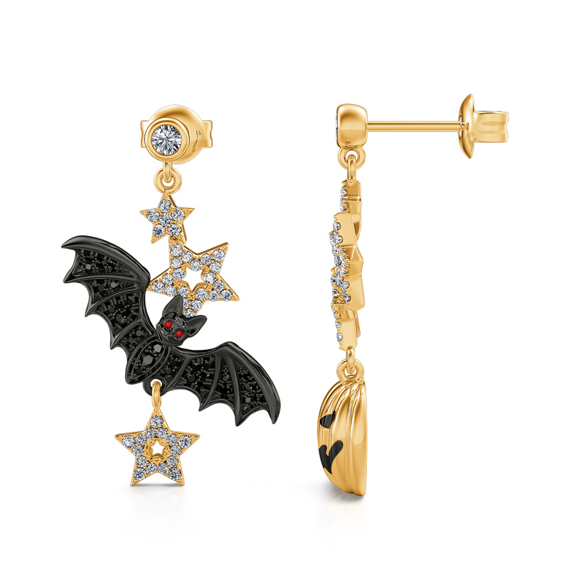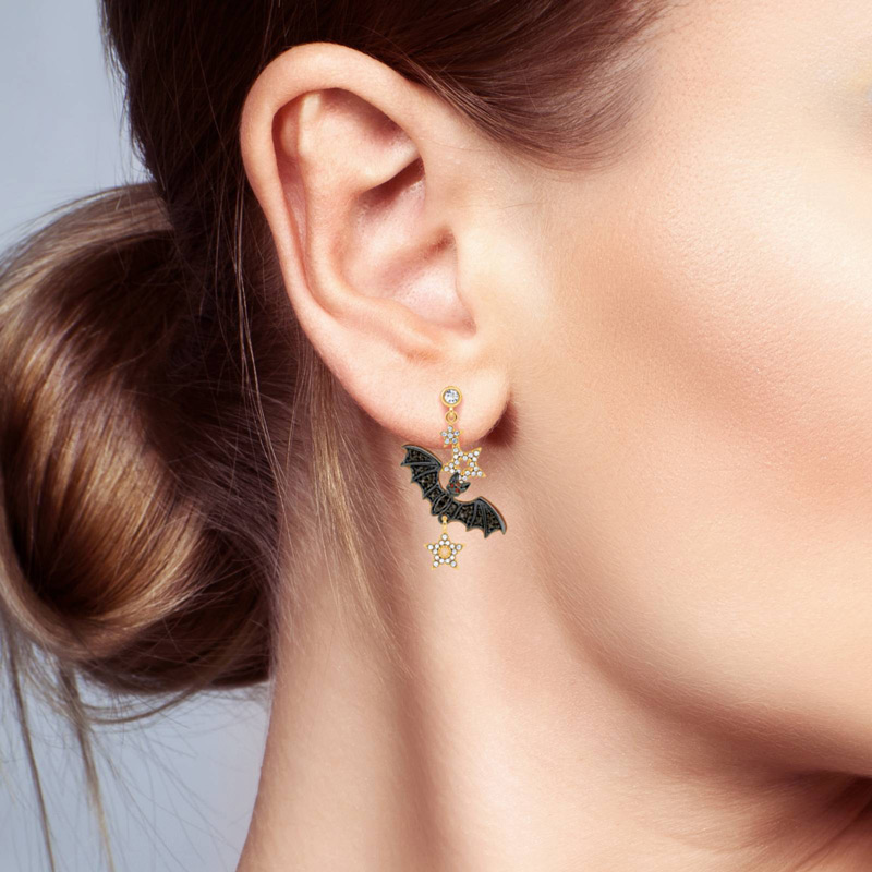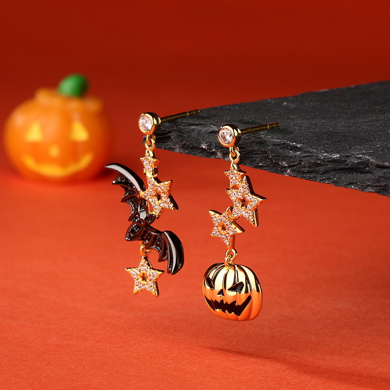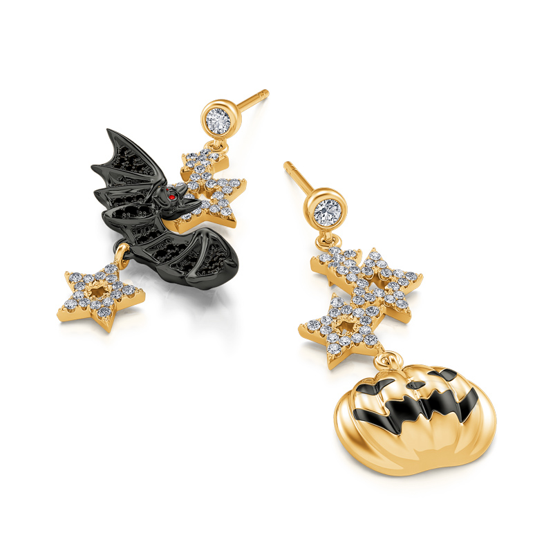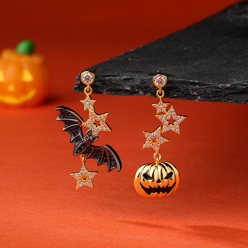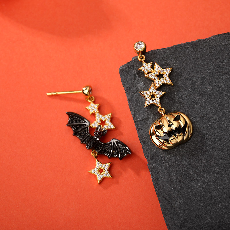 Jeulia "Plaisir d'Halloween" Boucles d'oreilles Asymétriques Chauve-souris & Citrouille en Argent Sterling