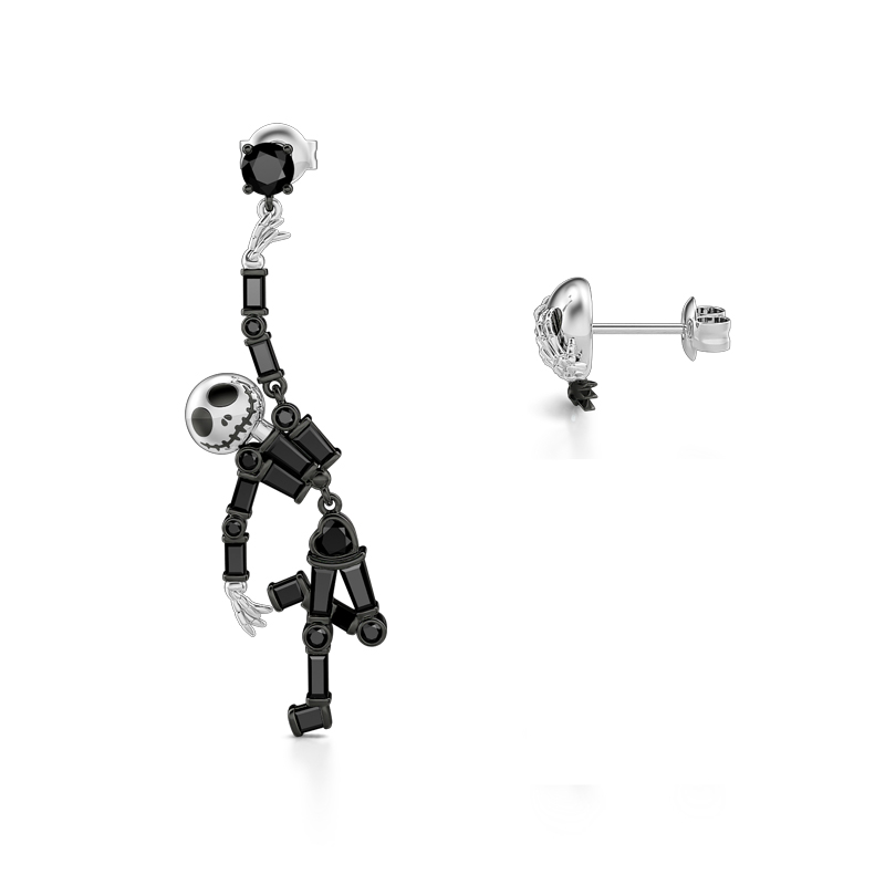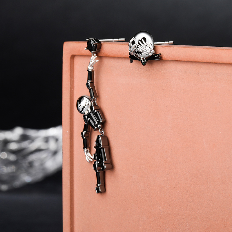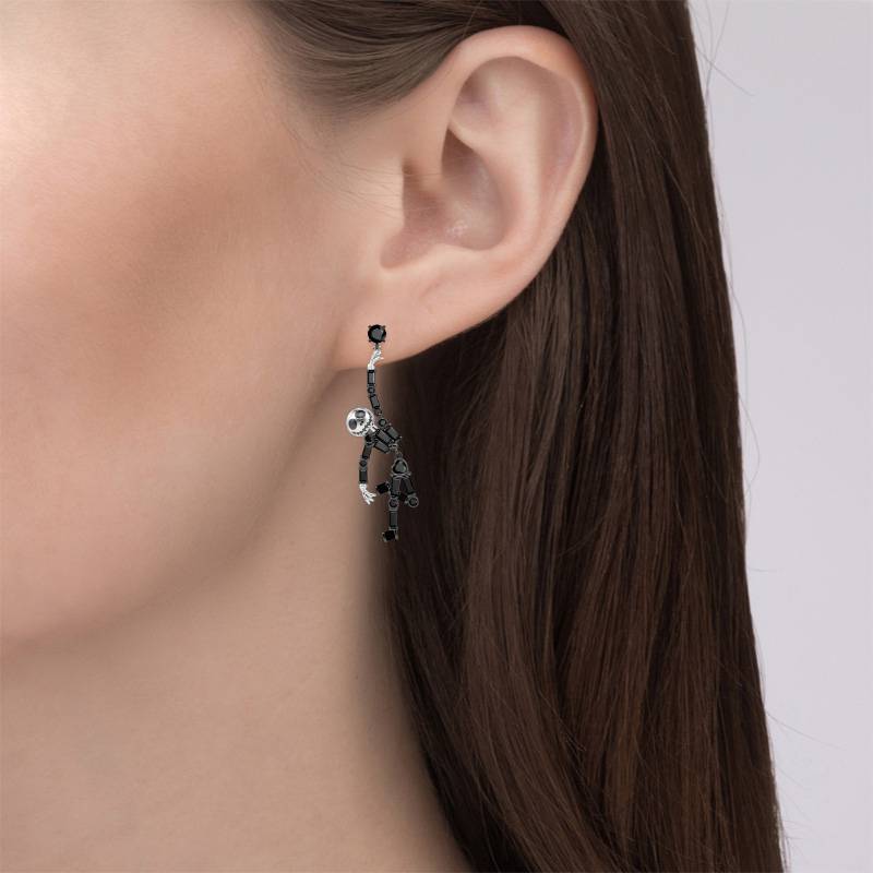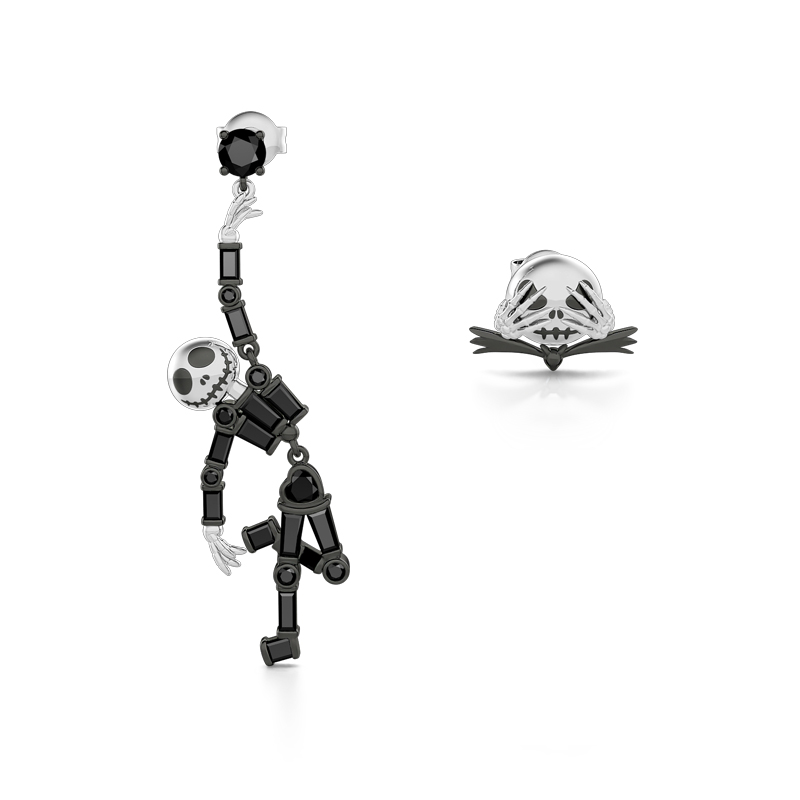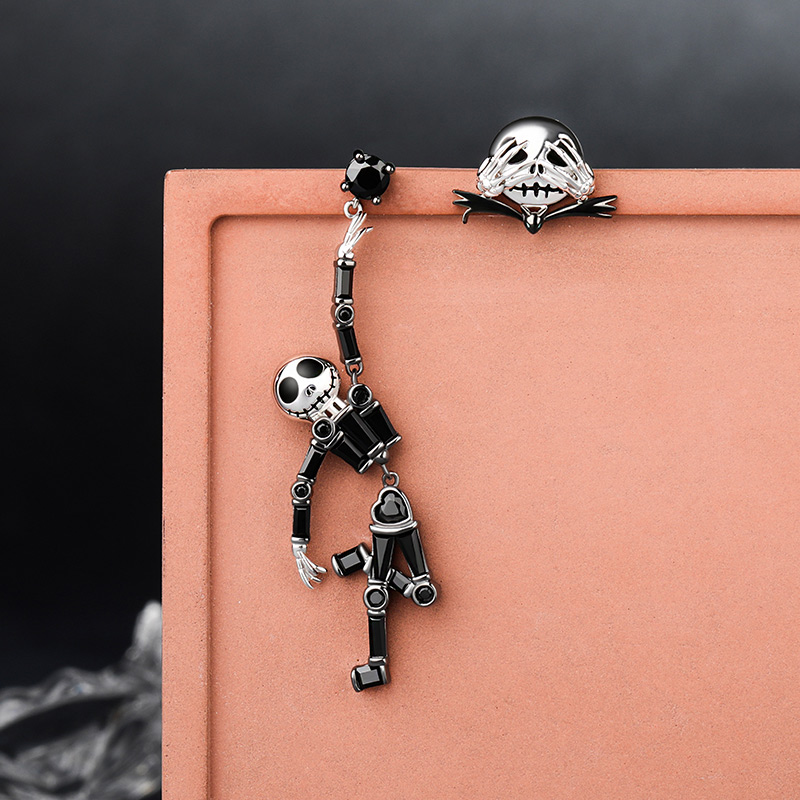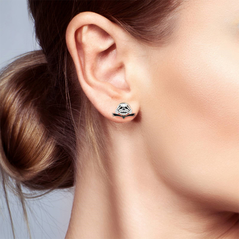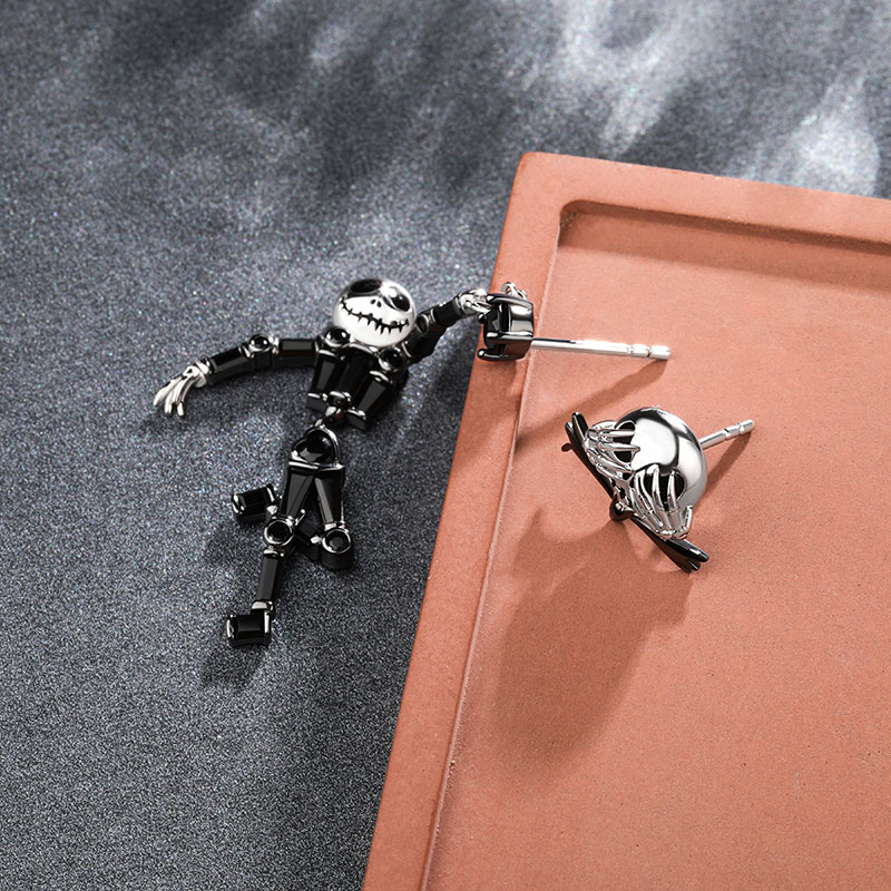 Jeulia "Plaisir d'Halloween" Boucles d'oreilles Asymétrique Motif de Crâne en Argent Sterling