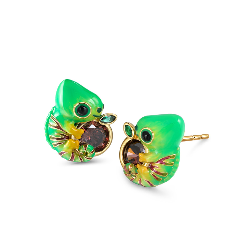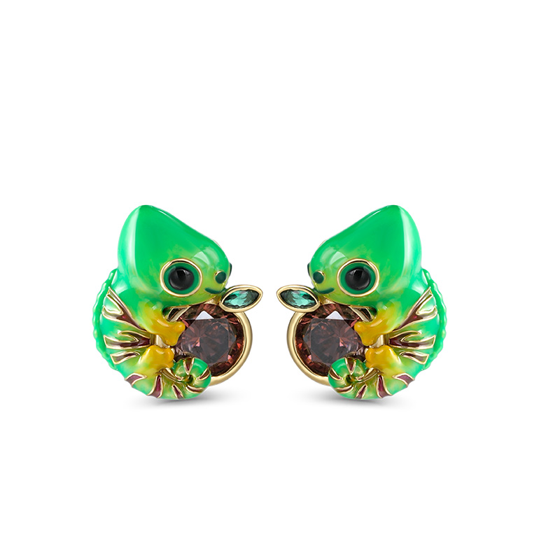 Je parie que ceux-ci seront les boucles d'oreille les plus uniques et les plus cool de vos collections. Le beau caméléon se déplace parmi les jungles florales. Ce collier présente un petit caméléon vert s'accrochant à une feuille verte qui est décorée d'une pierre marron dans les branches. Ce sera le complément parfait à vos robes d'été. Vous trouverez des designs plus adorables et créatifs dans notre collection Hug Me®.