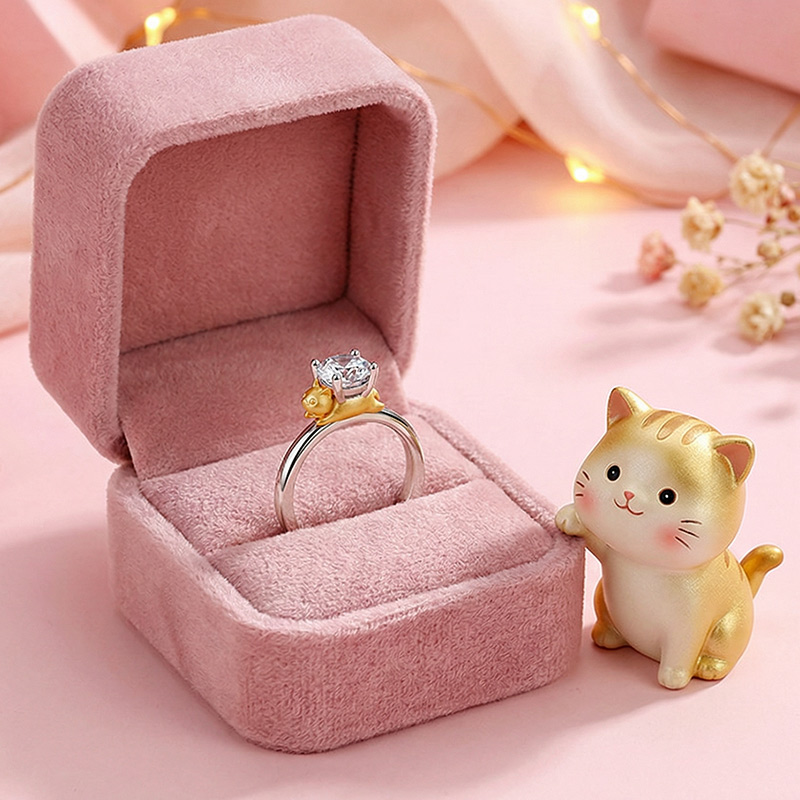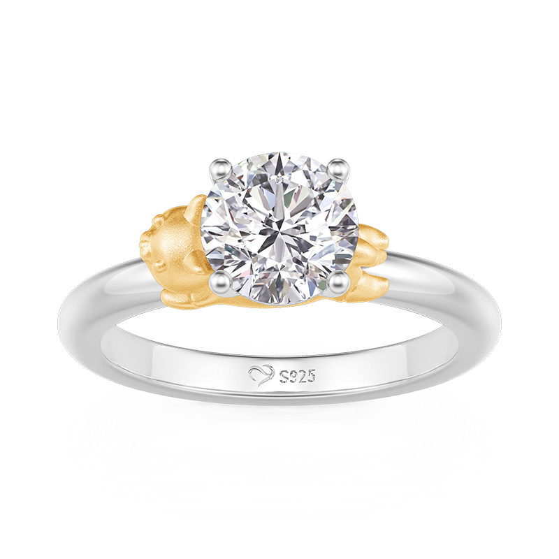 Jeulia Hug Me Bague Chat Mignon avec Pierre Coupe Ronde