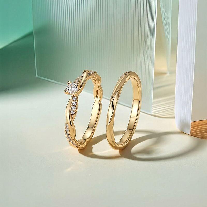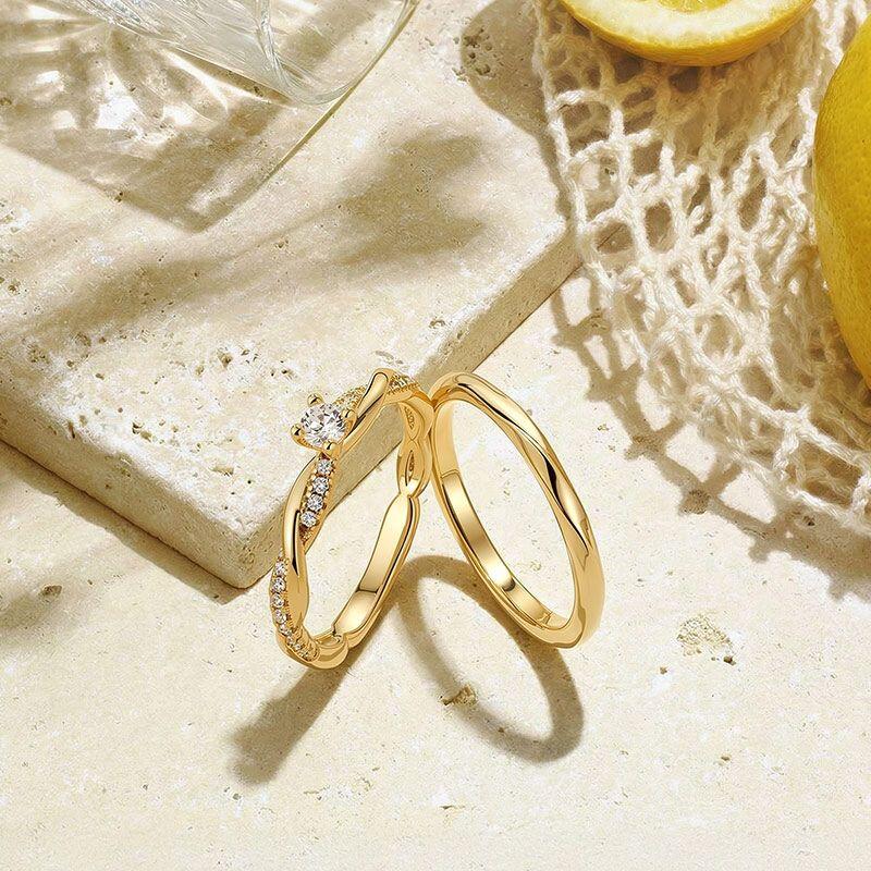 Jeulia "Love Entwined" Minimalist Twisted Gold Couple Ring Set