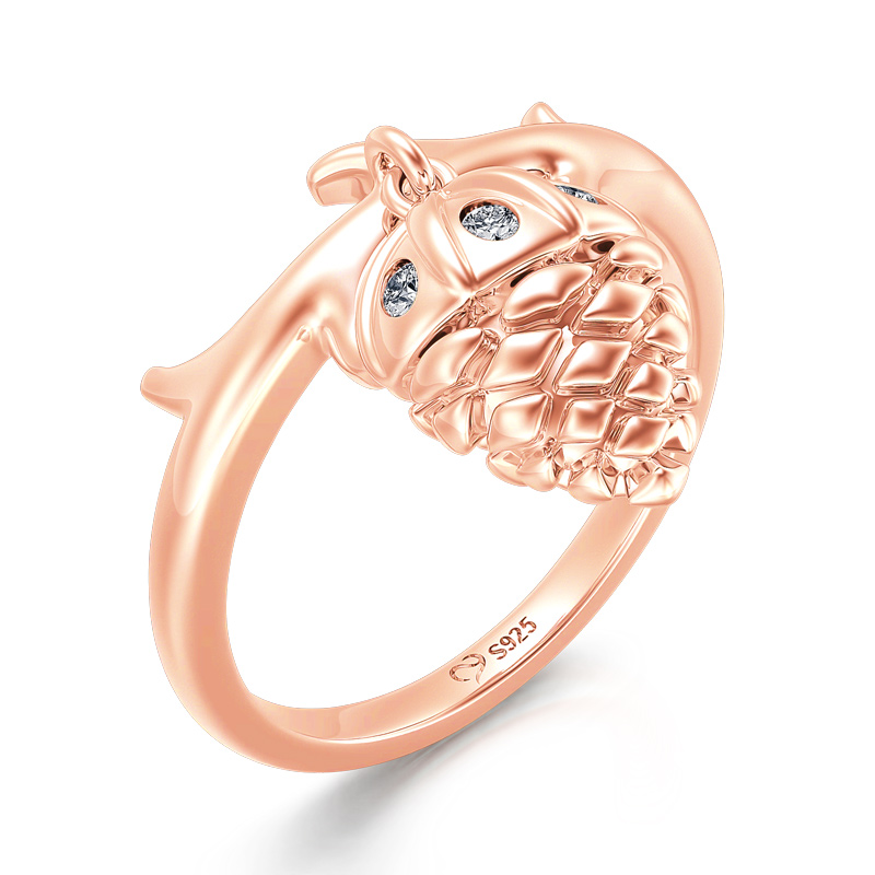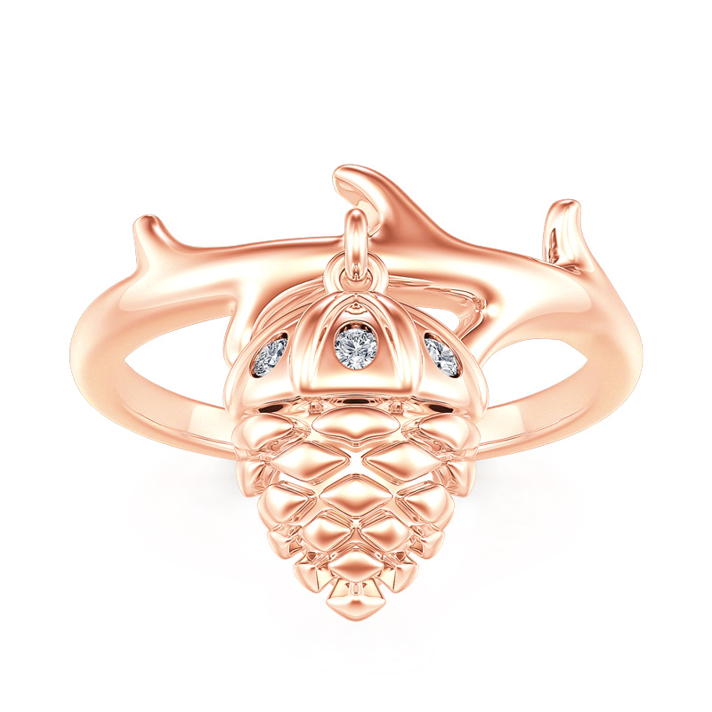 Jeulia "Gland chanceux" Bague à pendre Ton Or Rose Argent Sterling