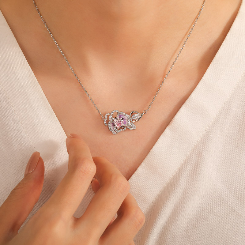 Le collier fleur de pensée Jeulia Midsummer Night s'épanouit avec l'attrait onirique de la fleur "amour-en-idlenéité" — son cœur un gemme octogonal rose-cut, irradiant un feu prismatique qui fond dans un émail violet comme le dernier murmure du crépuscule. Les pétales dégradent en aquarelle du crépuscule lavande à l'améthyste profonde, leurs bords baignés d'une lueur iridescente comme trempés dans du nectar de fée. Suspendu à une chaîne délicate texturée de veines micro-gravées, il ondule comme une tige capturée dans une brise éternelle, révélant des éclats cachés seulement sous la caresse du soleil. Pour ceux qui portent la magie comme seconde nature — où les fleurs ne sont pas cueillies, mais préservées comme des joyaux vivants, suspendues à jamais entre enchantement et élégance.