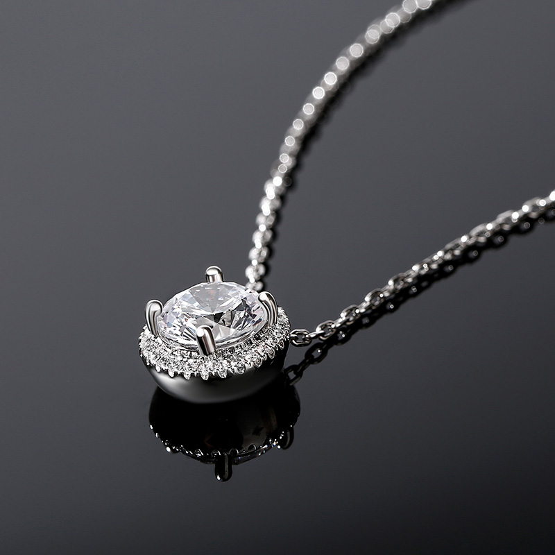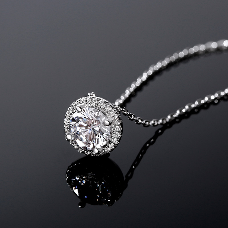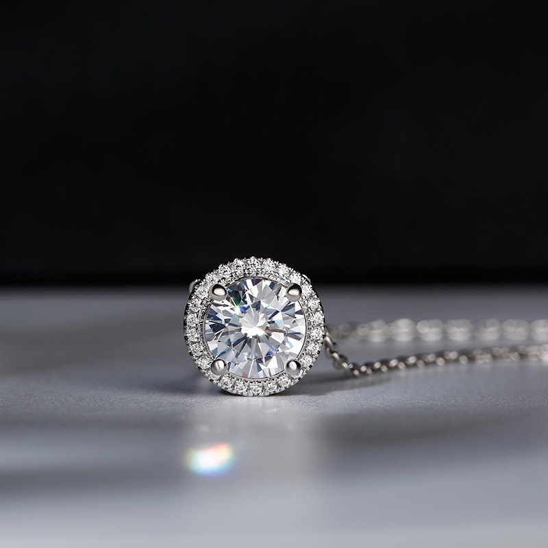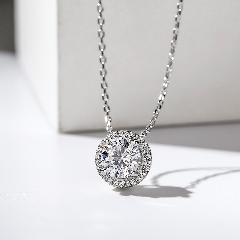 Jeulia Collier 10K/14K/18K Or Platine Moissanite Halo Coupe Ronde Cadeau