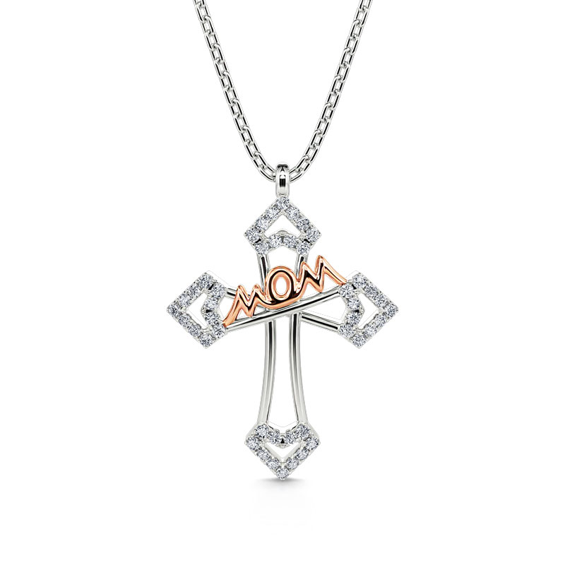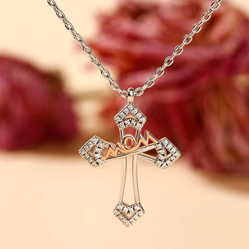 Jeulia Collier Croix Maman en Argent Sterling Plaqué Or Rose