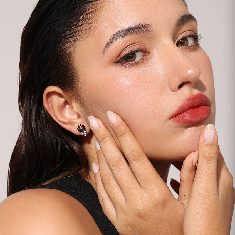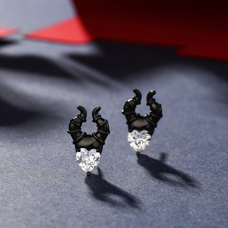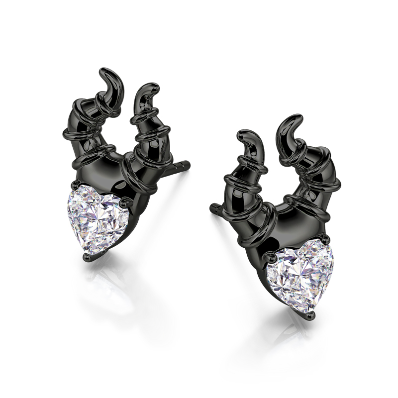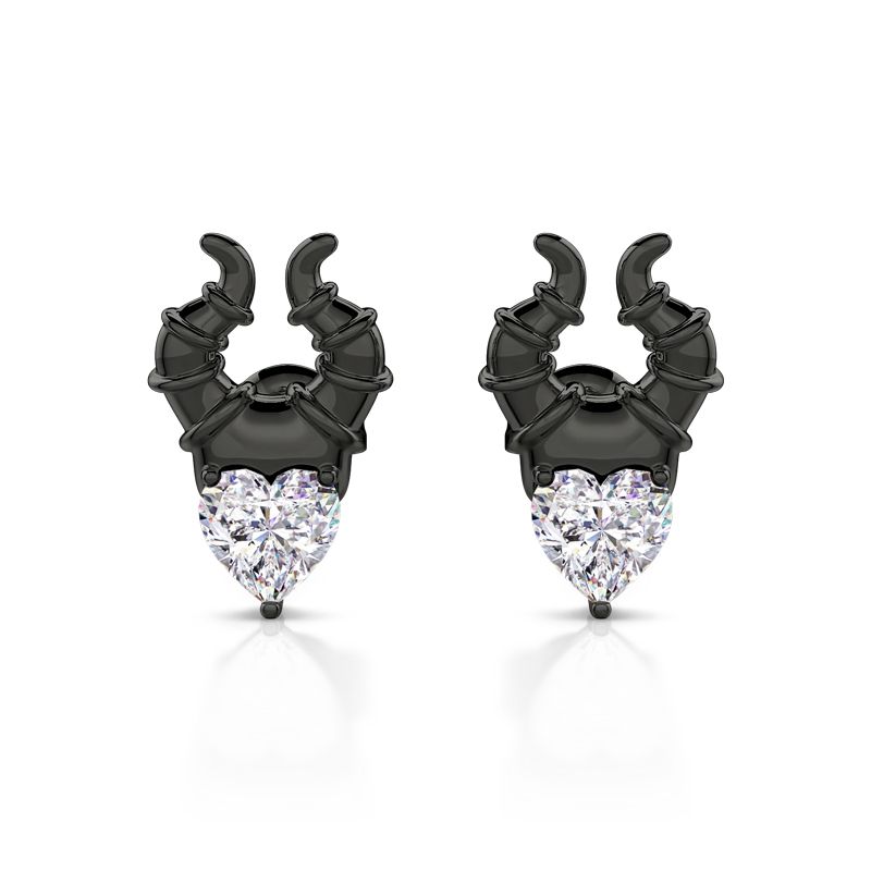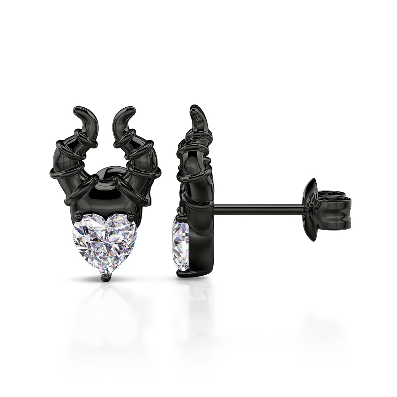 Jeulia Boucles d'oreilles Marraine Coupe Cœur Noir en Argent Sterling