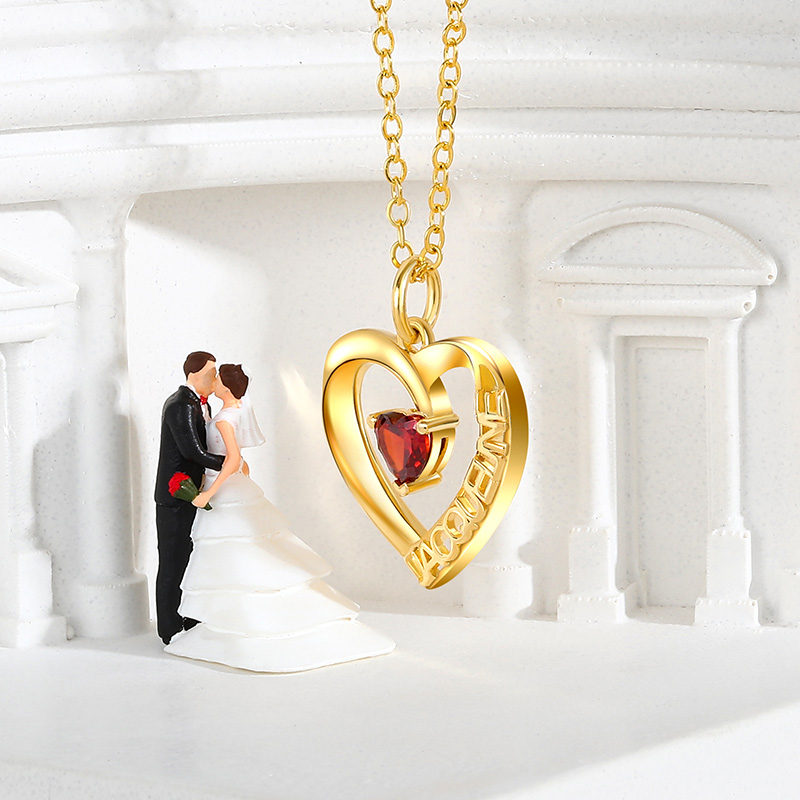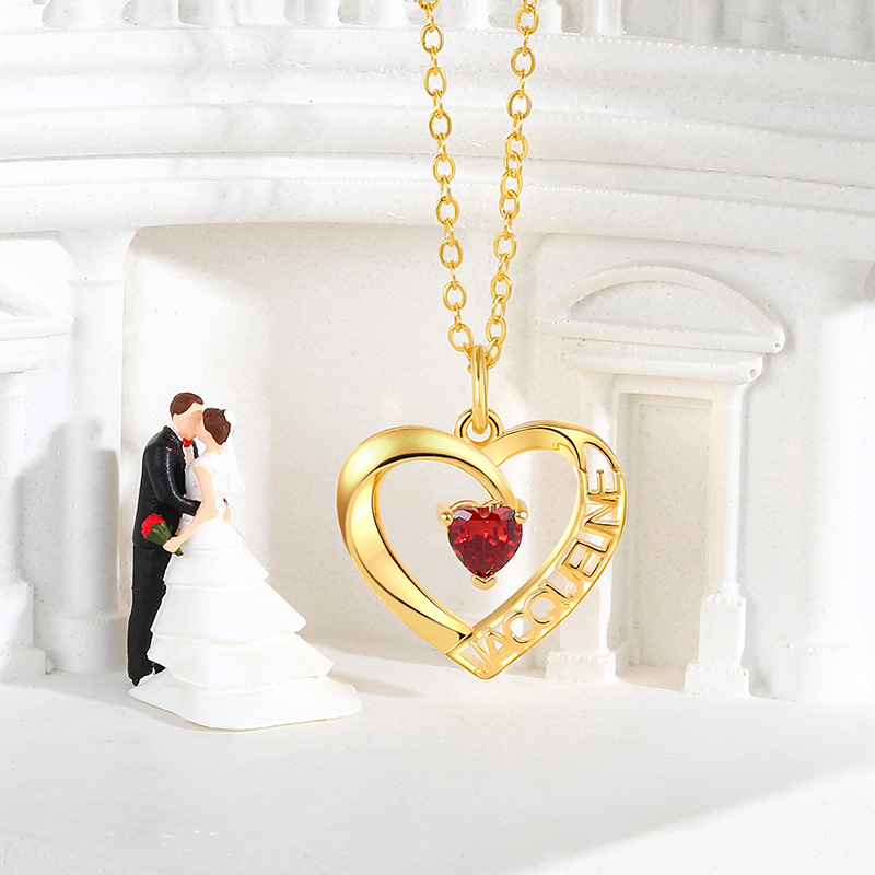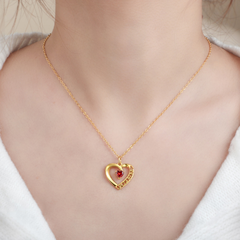 Jeulia Collier Personnalisé Nom Coeur Pierres de Naissance en Argent Sterling