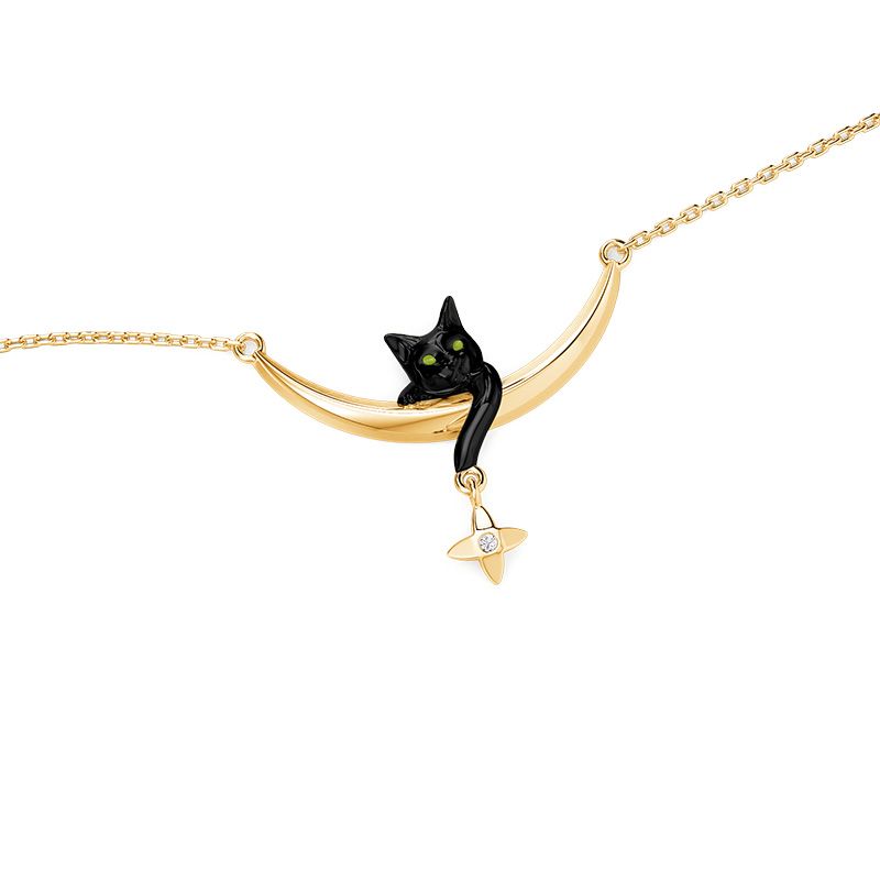 Jeulia Petland Collier Chat Noir Lune avec Accent Étoile