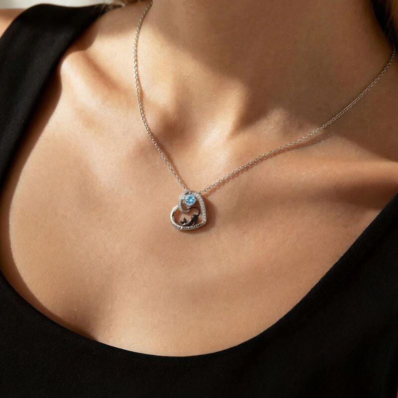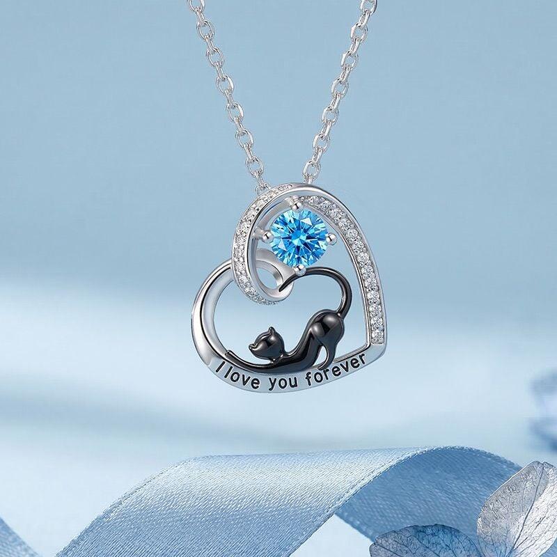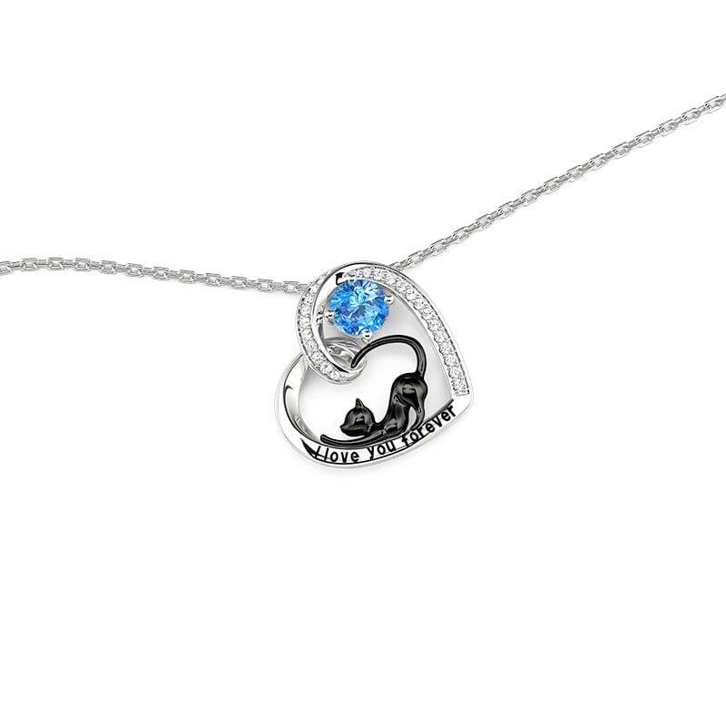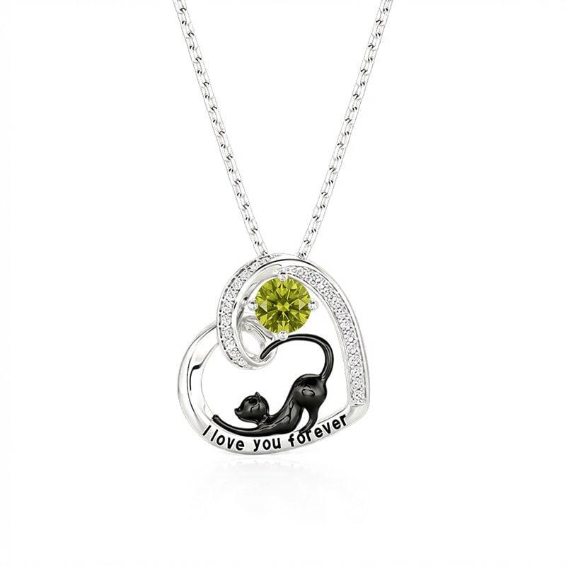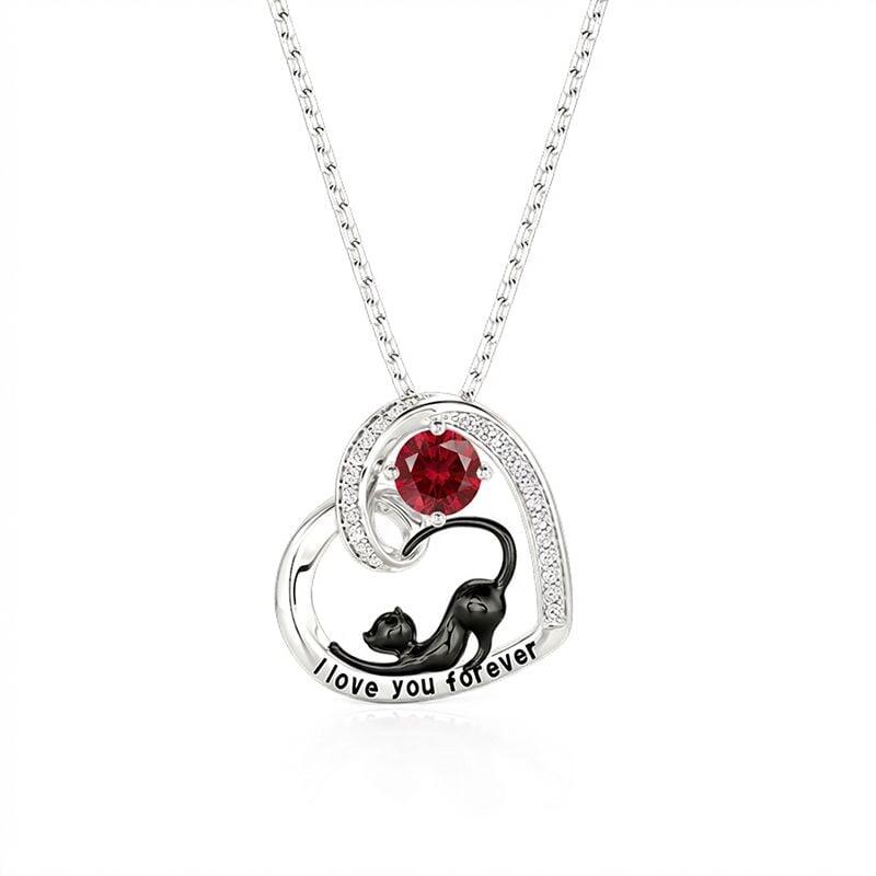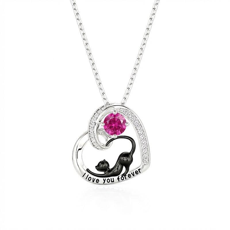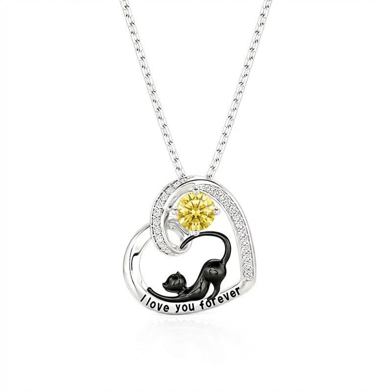 Jeulia Petland Collier Personnalisé Cœur Chat Noir avec Pierre de Naissance