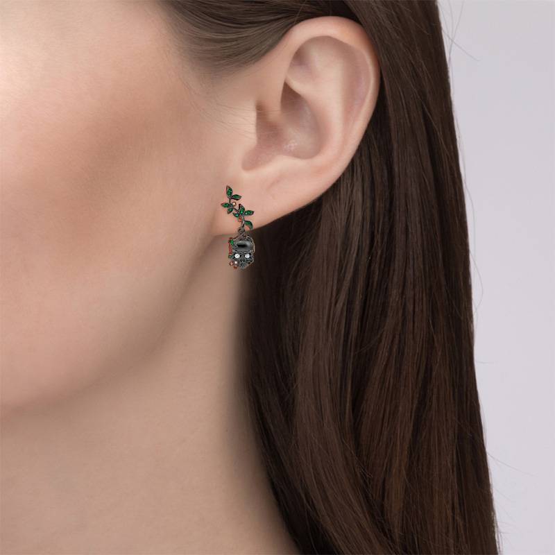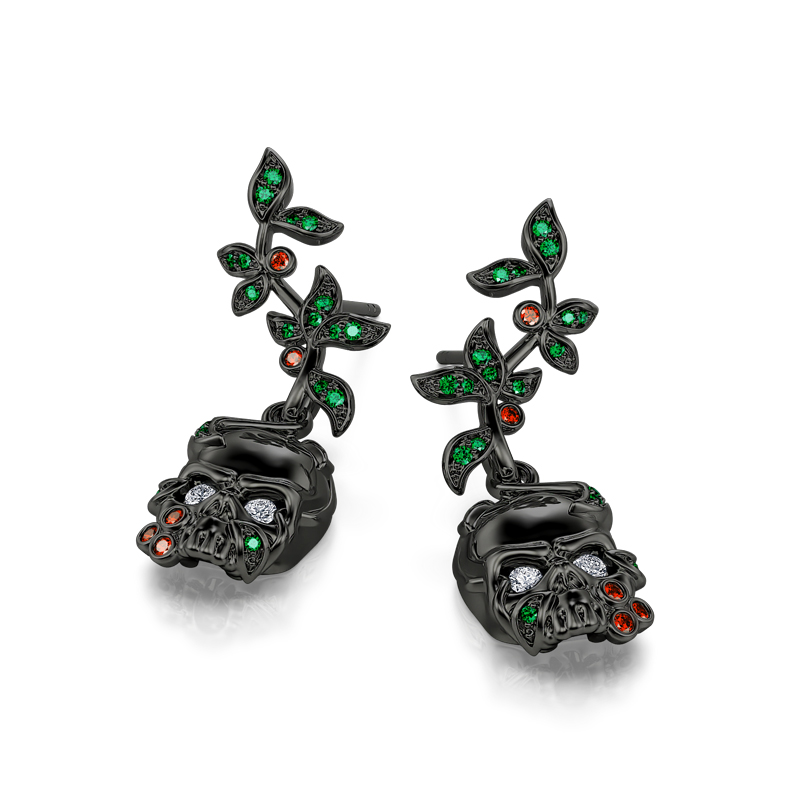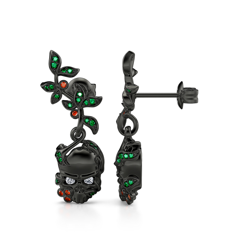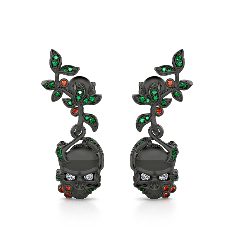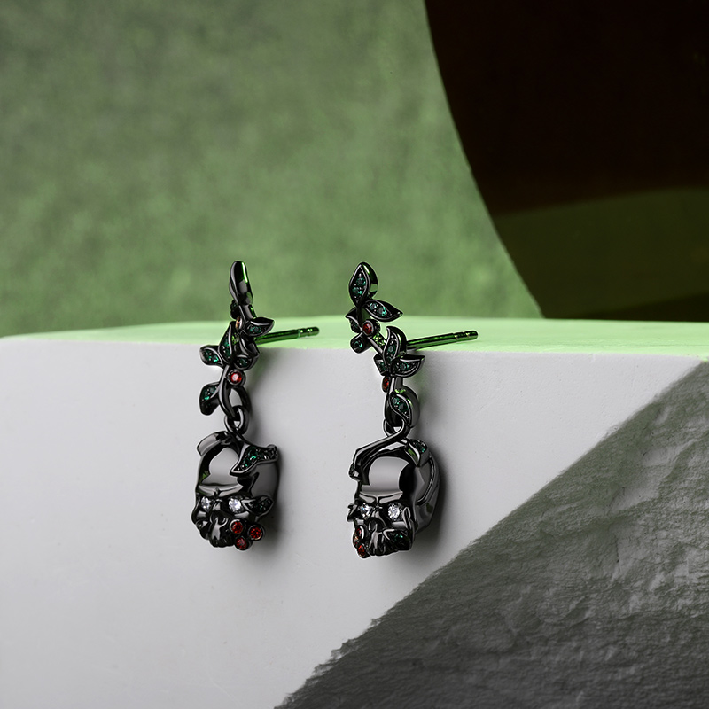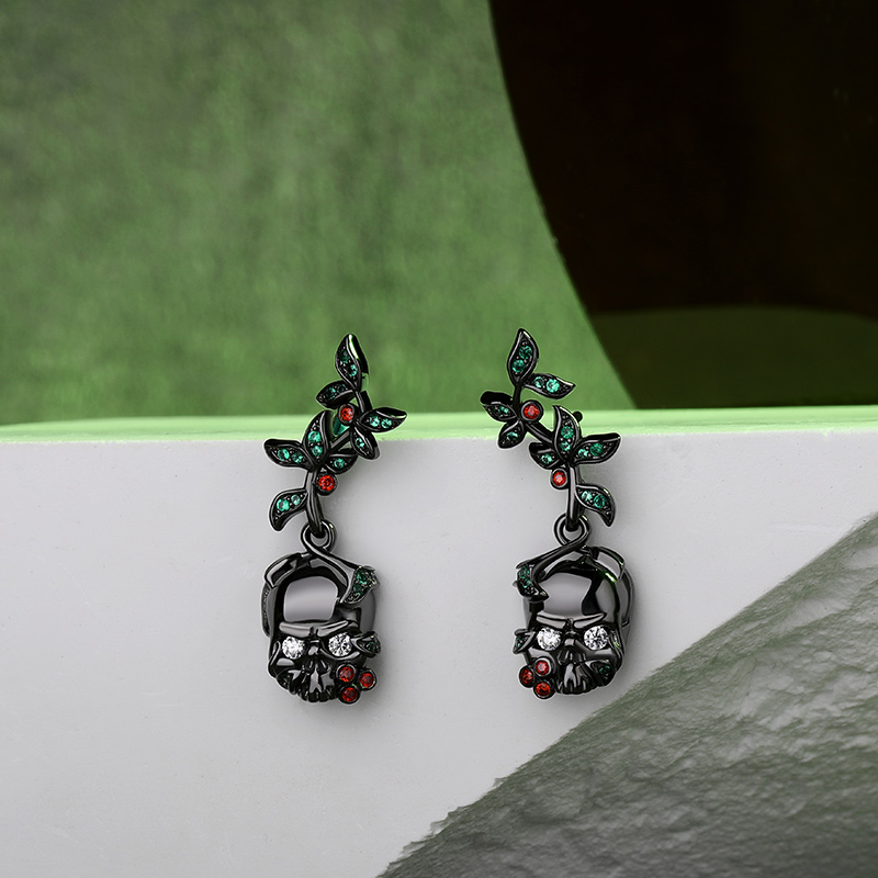 Jeulia "Renaissance" Boucles d'oreilles Crâne Feuilles Argent Sterling pour Toussaint