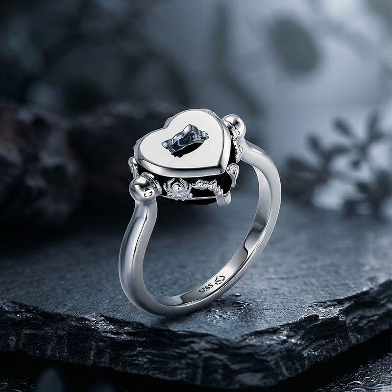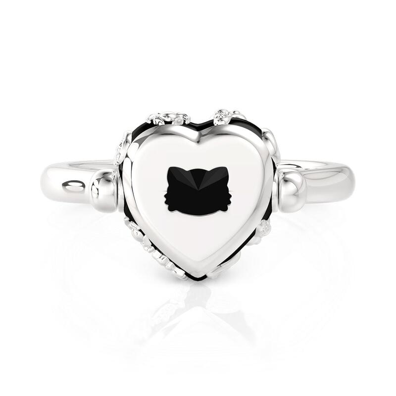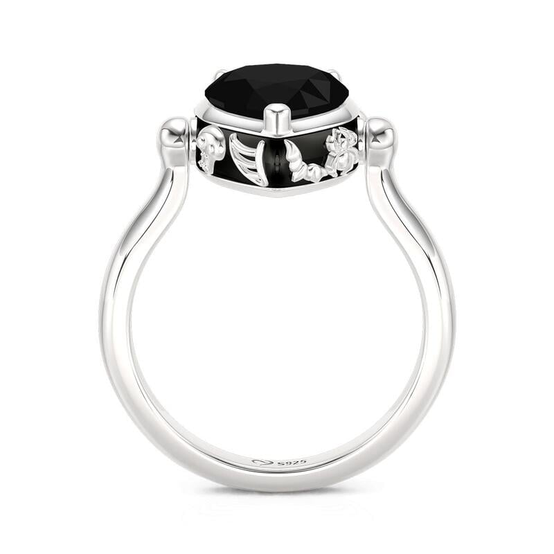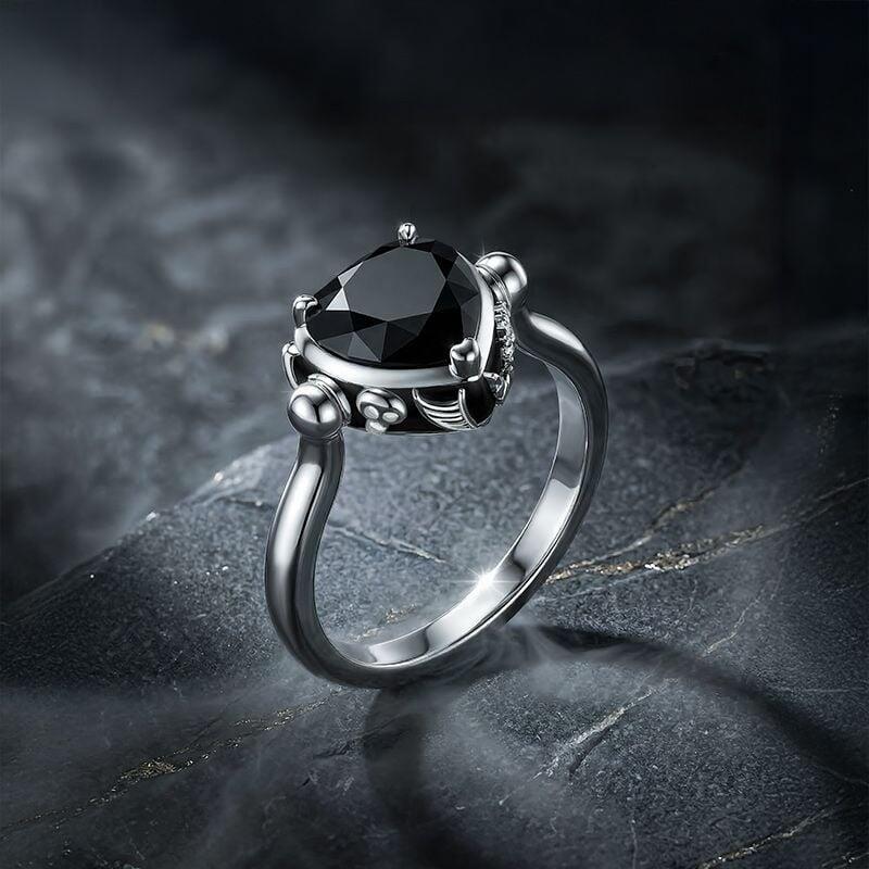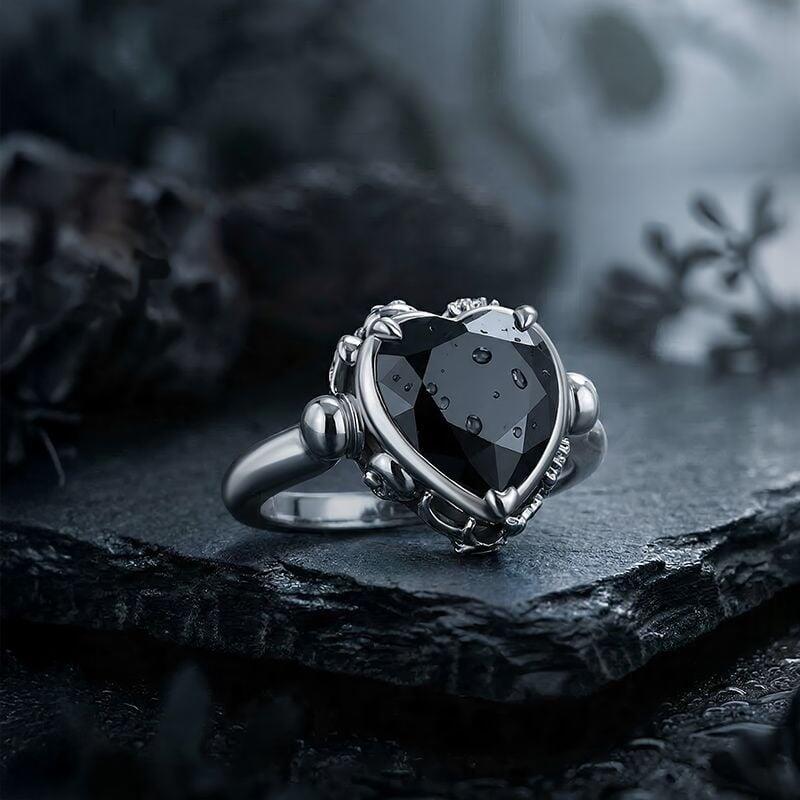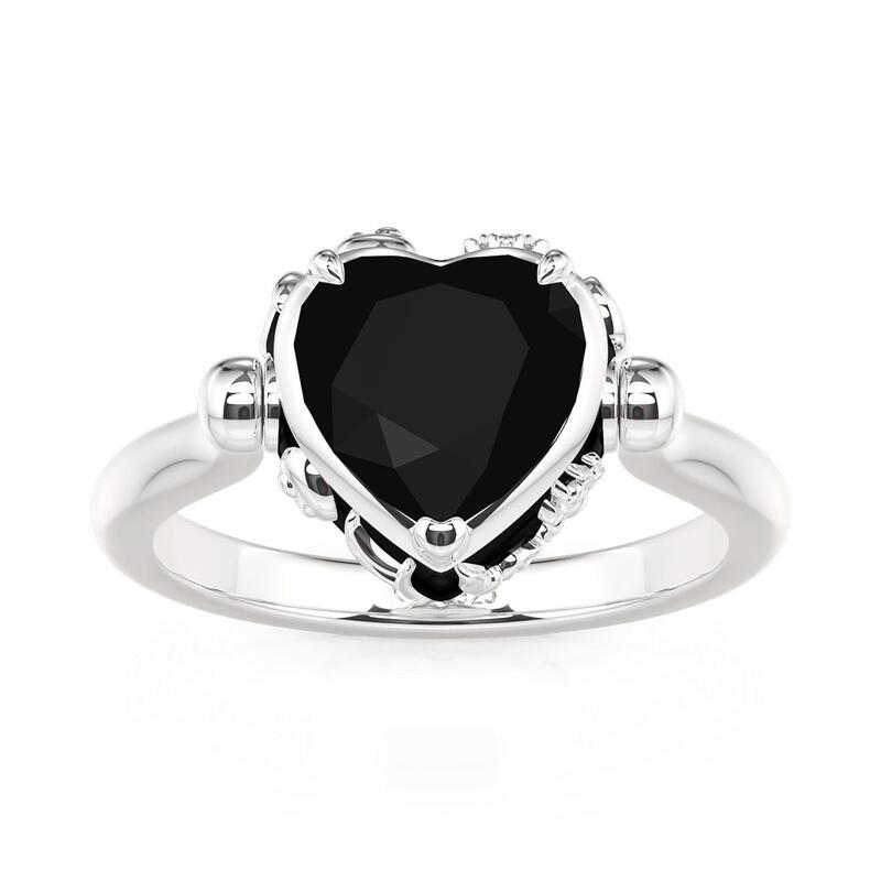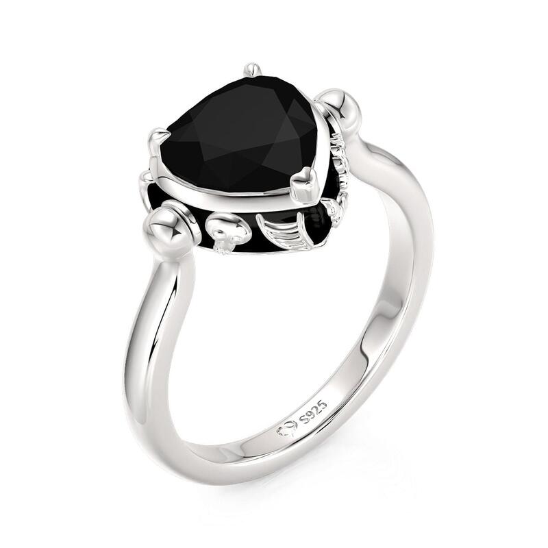 Retournez l'anneau pour révéler deux faces : un côté une pierre sombre en forme de cœur dans un sertissage lisse, l'autre un chat noir sculpté émergeant de l'ombre—avec des toiles d'araignée, des crânes et des chauves-souris tracés le long de la tige pour ceux qui trouvent la beauté dans l'obscurité. Cette Bague Cœur Noir Réversible Jeulia change avec votre humeur, car certaines histoires ont besoin de plus d'un côté pour être racontées.