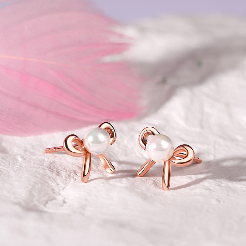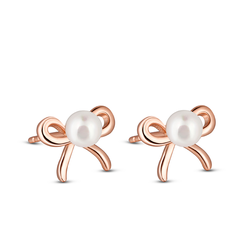 Jeulia Boucles d'oreilles pour Enfants Ruban Noeud Perle de Culture en Argent Sterling